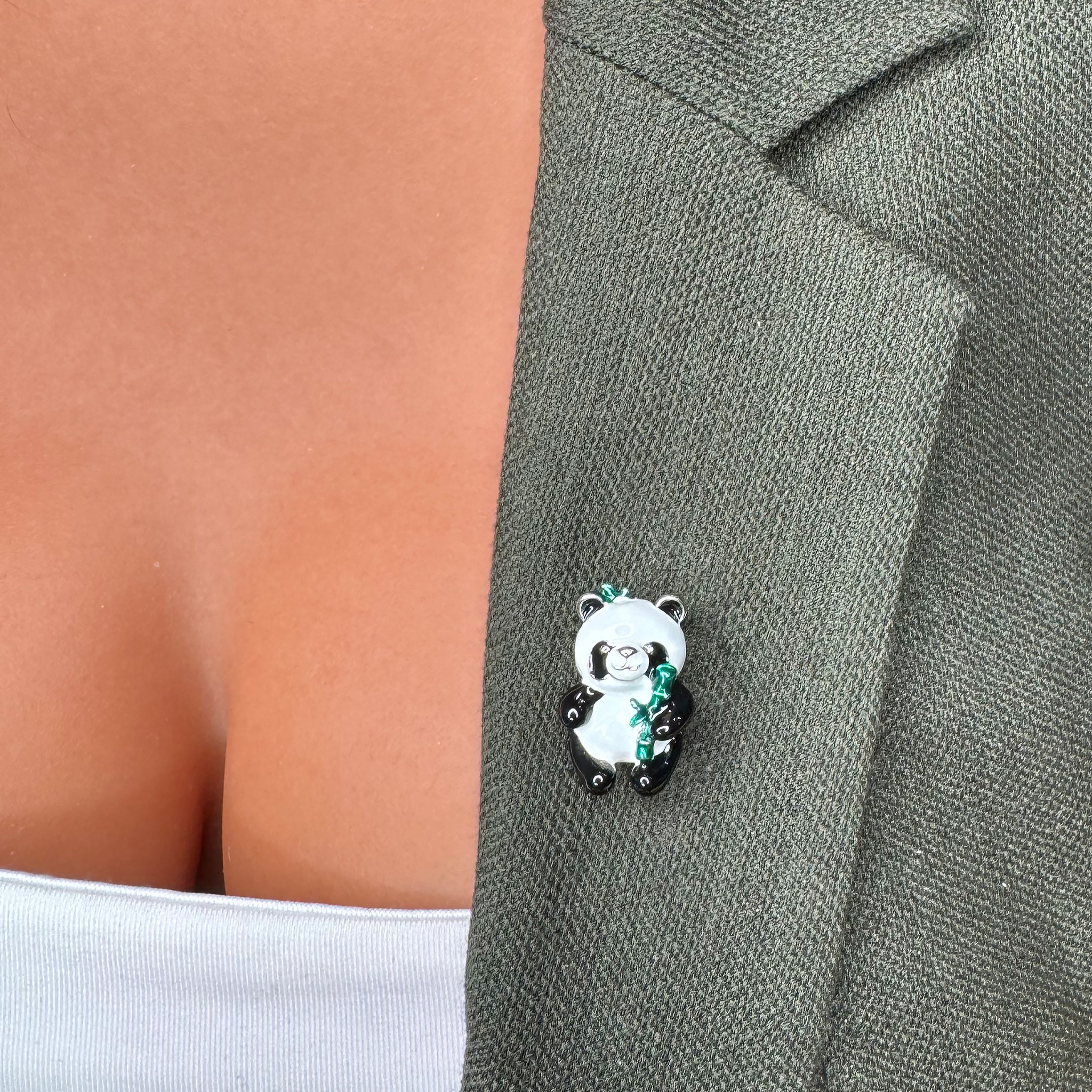 - Panda simbolizează echilibrul, prietenia și liniștea interioară. Este un mesager al blândeții și al bucuriei simple, ceea ce face din această broșă un accesoriu cu semnificație aparte.