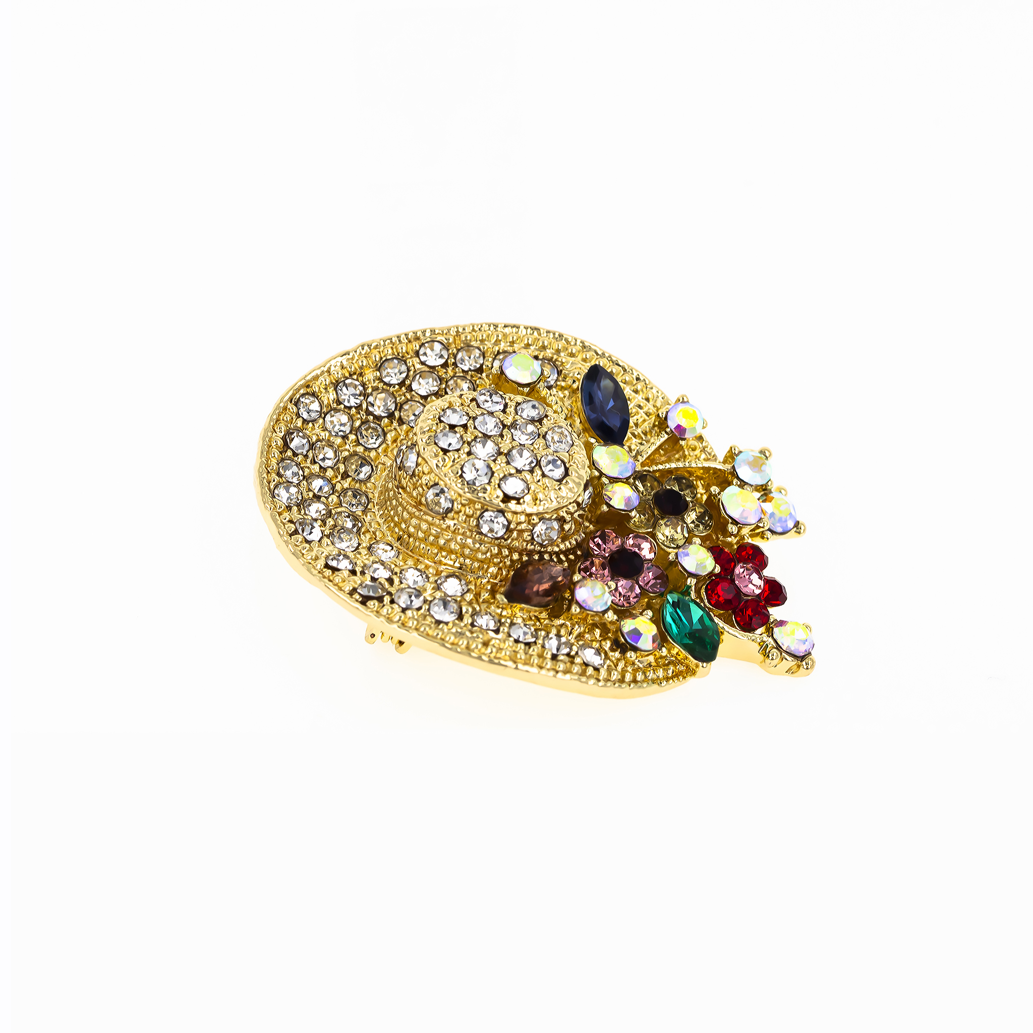 - Design: Broșa înfățișează o pălărie stilizată aurie, decorată cu floricele fine, care conferă un aer vesel și elegant. Finisajul auriu adaugă strălucire, iar floricelele aduc un strop de prospețime și delicatețe.