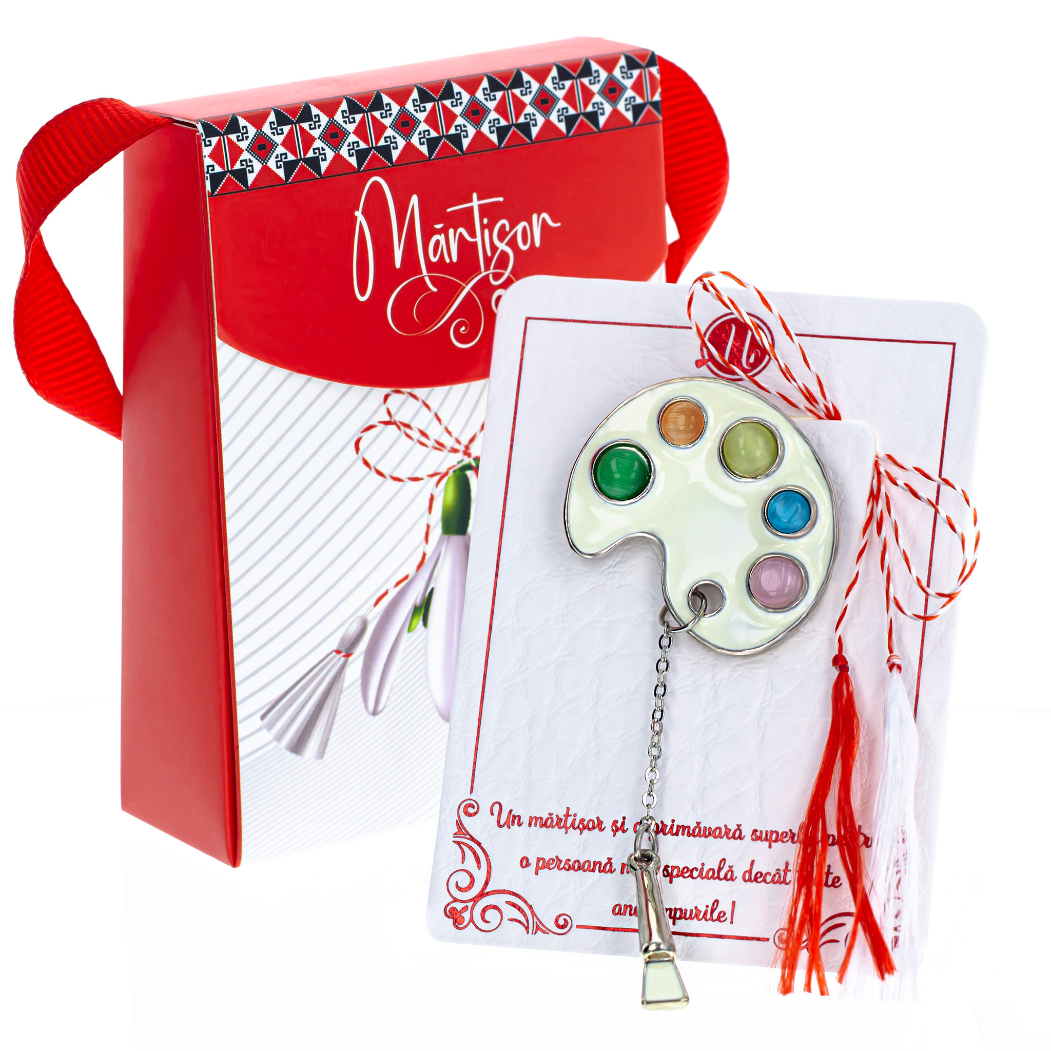 - Paleta de culori înseamnă diversitate și creativitate, iar în contextul Mărțișorului, aceasta devine o metaforă pentru frumusețea și vitalitatea primăverii. Broșa Mărțișor în formă de paletă albă de culori simbolizează o invitație la exprimarea artistică și la bucuria adusă de diversitatea naturii în timpul acestei sărbători. Fiecare nuanță reprezentată poate avea și o semnificație distinctă, creând o bijuterie bogată în simboluri.