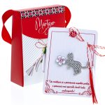 - Broșă Mărțișor Gentuță Pisicuță Argintie cu Floare, șnur Marțișor alb-roșu, ambalată în cutie tip gentuță, pregătită cu grijă pentru a fi oferită ca un cadou special, simbol al tradiției.