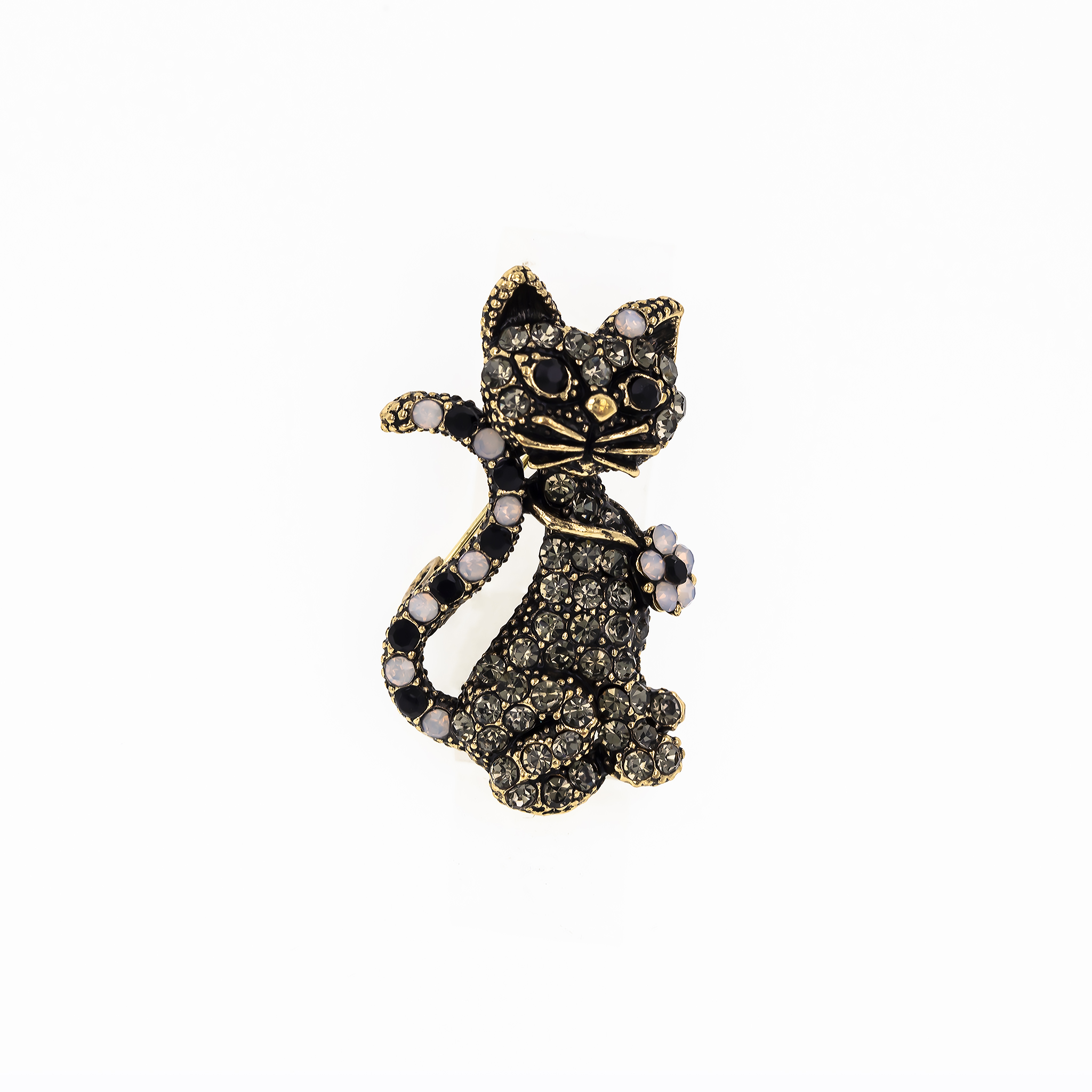 - Design: Broșa este realizată sub forma unei pisicuțe stilizate, cu detalii fine și o floricică decorativă, care îi conferă un aer vesel și delicat. Formele grațioase o fac un accesoriu simpatic și elegant.