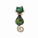 - Design: Această broșă impresionează prin contururile simpatice ale pisicuței și prin fundița adorabilă plasată în jurul gâtului. Detaliile fine ale urechilor și ale cozii adaugă un plus de farmec întregii bijuterii, iar fundița contribuie la un aspect jucăuș și vesel.