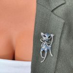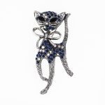 - Design: Sub forma unei pisicuțe stilizate, decorată cu pietricele albastre strălucitoare, broșa atrage atenția prin delicatețea și frumusețea detaliilor. Nuanța albastră îi conferă un aer modern.