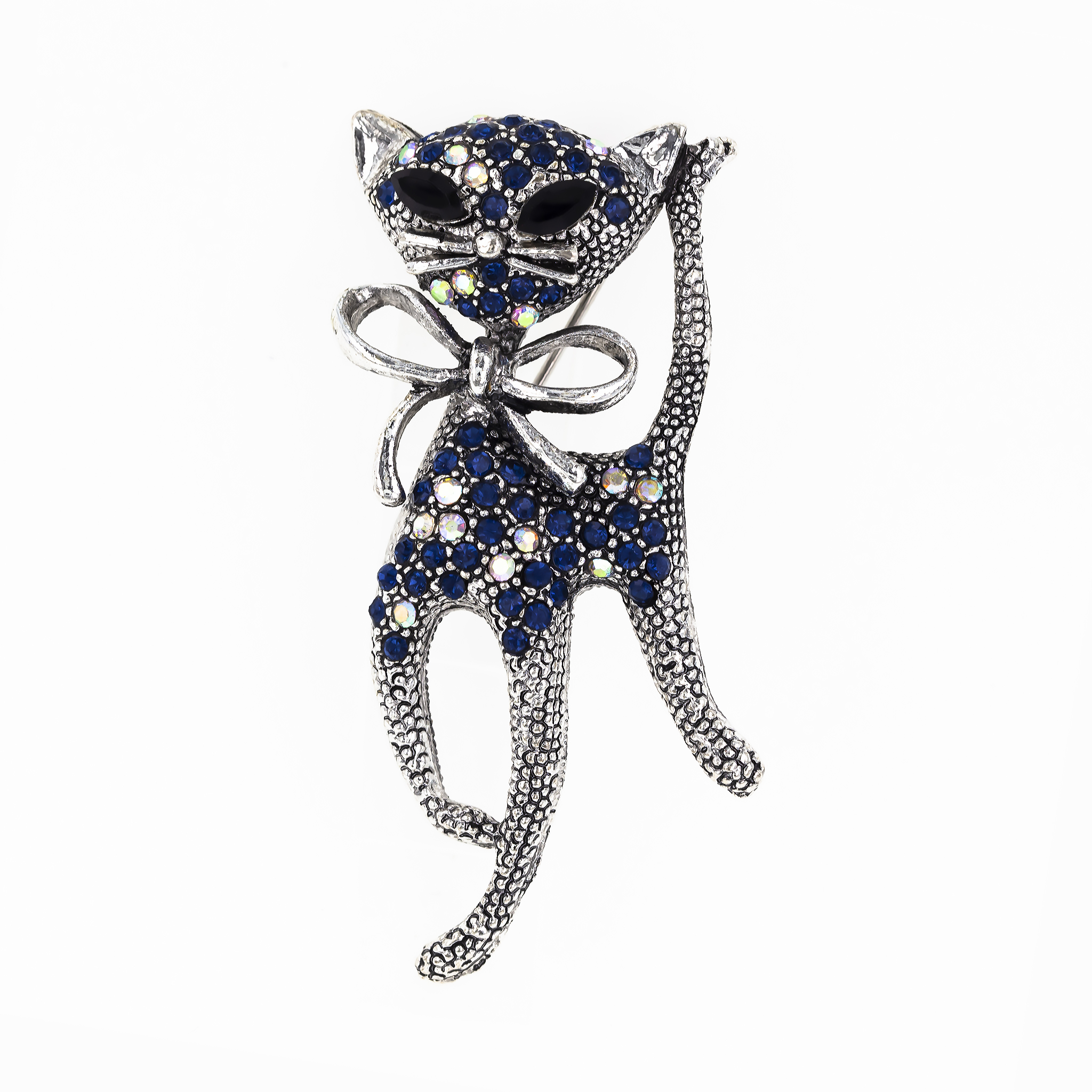 Această broșă Mărțișor este un accesoriu jucăuș care surprinde farmecul pisicuței într-un design elegant, împodobit cu pietricele albastre.