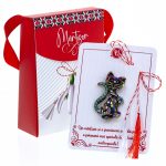 - Broșă Mărțișor Gentuță Pisicuță cu Pietricele Multicolore, șnur Marțișor alb-roșu, ambalată în cutie tip gentuță, pregătită cu grijă pentru a fi oferită drept simbol al tradiției și al frumuseții primăverii.