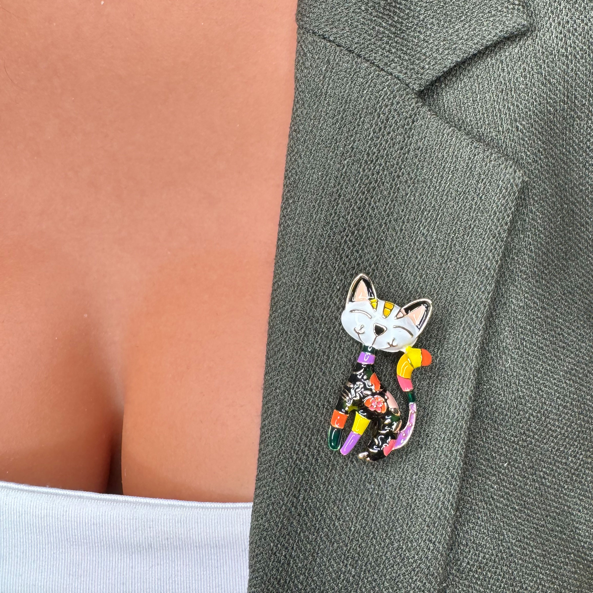 Această broșă surprinde energia și optimismul printr-o pisicuță veselă și colorată, simbol al bucuriei și al expresivității. Culorile vibrante transmit voie bună și inspirație, iar designul jucăuș aduce un strop de veselie în orice ținută. Este un accesoriu care evocă zâmbete și emoții pozitive.
