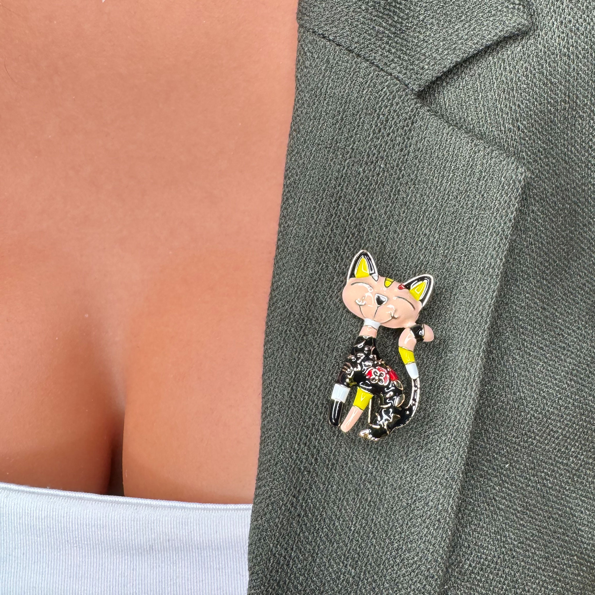 - Design: Broșa este realizată sub forma unei pisicuțe zâmbitoare, cu detalii fine care îi conferă expresivitate și un aer prietenos. Formele delicate și expresia veselă o fac un accesoriu irezistibil.