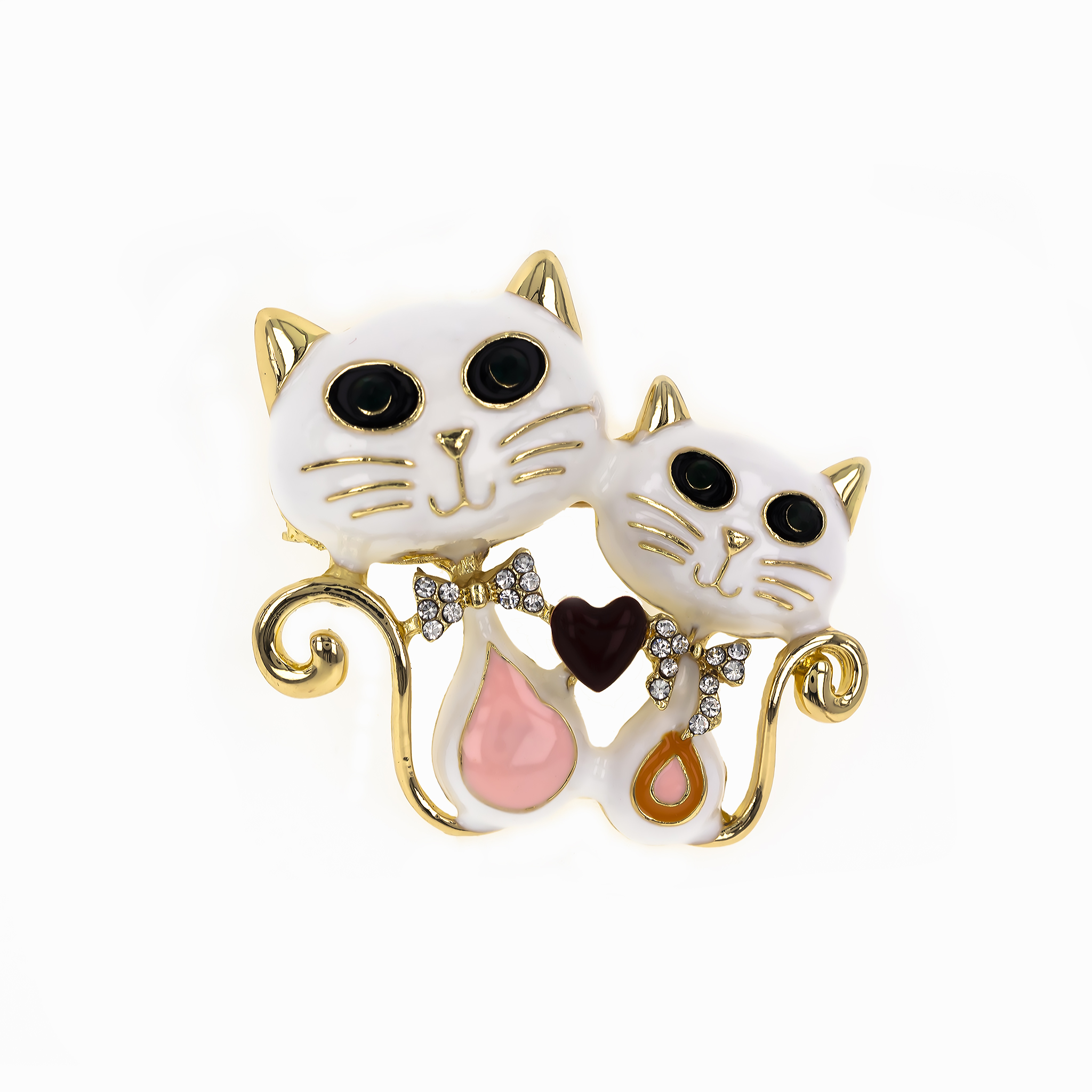 - Design: Broșa înfățișează două pisicuțe albe, simbol al purității și al tandreței. Siluetele lor jucăușe și expresive oferă un aer vesel și prietenos, transformând această bijuterie într-un accesoriu deosebit.