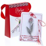 - Broșă Mărțișor Gentuță Trandafir Argintiu, șnur Marțișor alb-roșu, ambalată în cutie tip gentuță, pregătită cu grijă pentru a fi oferită ca un cadou special, simbol al tradiției.