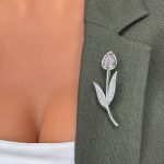 Această broșă emană o aură de rafinament și eleganță, potrivită pentru a evidenția frumusețea și feminitatea într-un mod subtil și rafinat. Cu designul său în formă de trandafir și strălucirea pietrelor, transmite un aer sofisticat și clasic, fiind potrivită pentru ocazii speciale sau pentru a sublinia eleganța unei ținute.