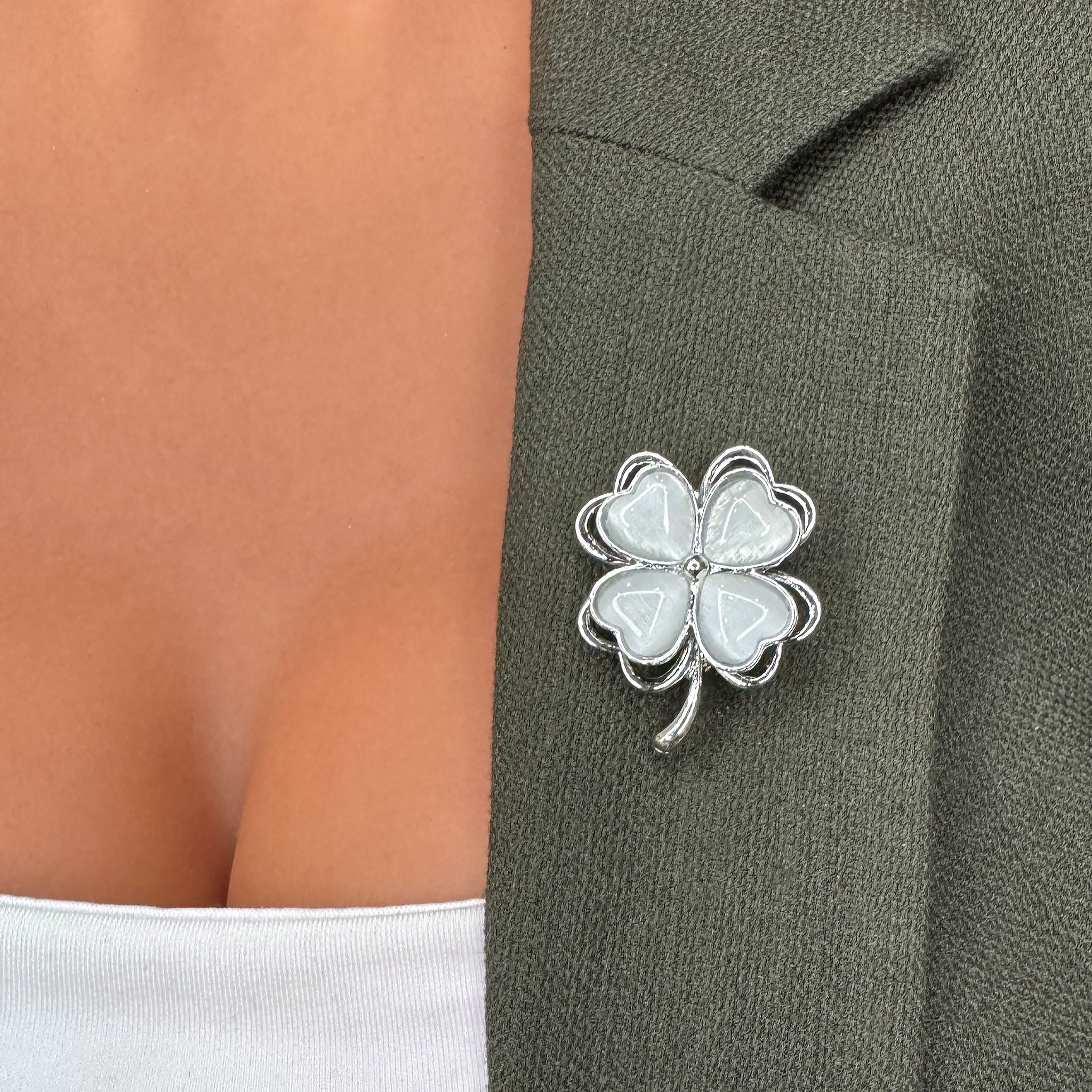 - Trifoiul este adesea asociat cu norocul, iar inimioarele adaugă o notă de afecțiune și tandrețe. Broșa devine astfel o mică poveste despre norocul iubirii și alegerea fericită a fiecărui moment.
