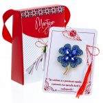 - Broșă Mărțișor Gentuță Trifoi cu Petale Albastre, șnur Marțișor alb-roșu, ambalată în cutie tip gentuță, pregătită cu grijă pentru a fi oferită drept simbol al tradiției și al frumuseții primăverii.