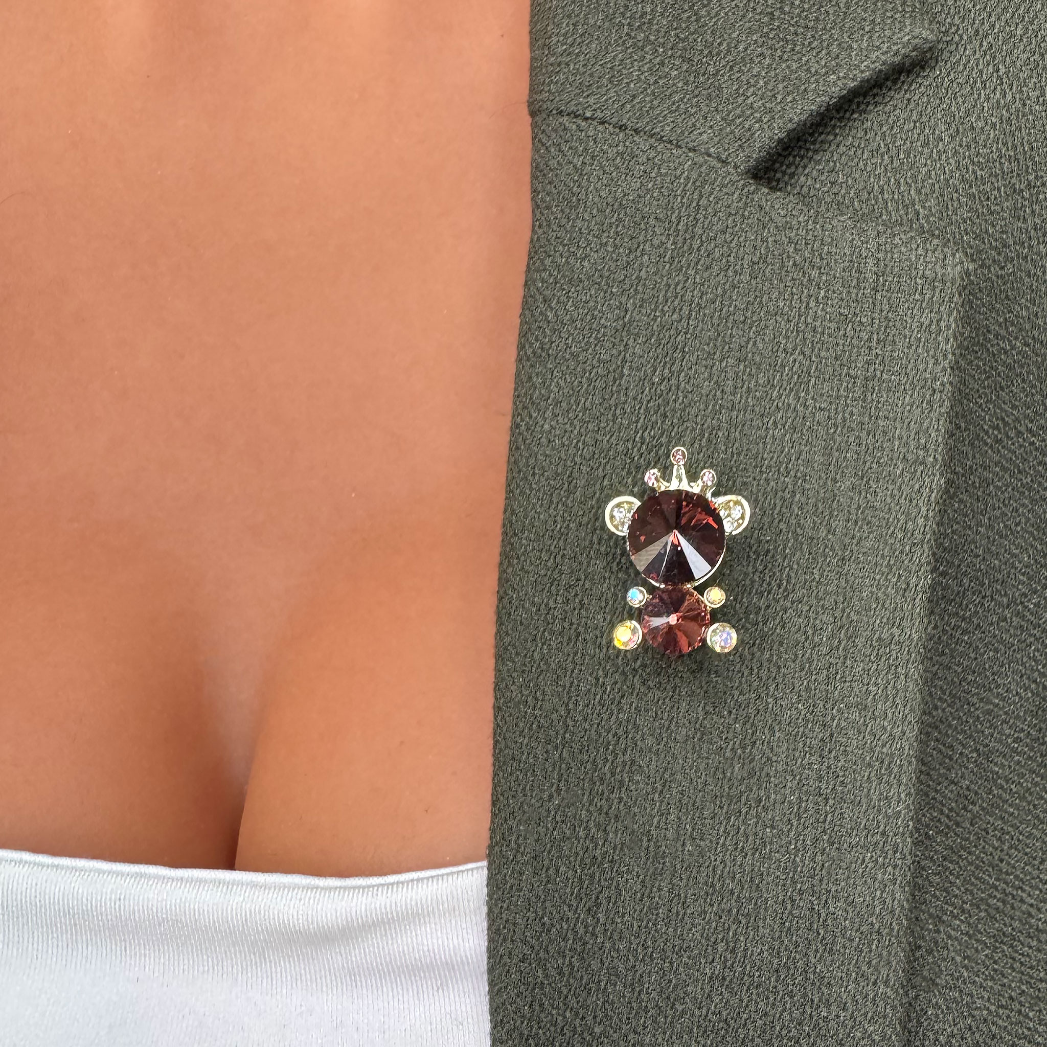 - Ursulețul este adesea asociat cu gingășia și căldura, iar coronița poate simboliza nobilimea și importanța. Broșa devine astfel o mică poveste despre regalitate și gingășie într-un singur accesoriu.