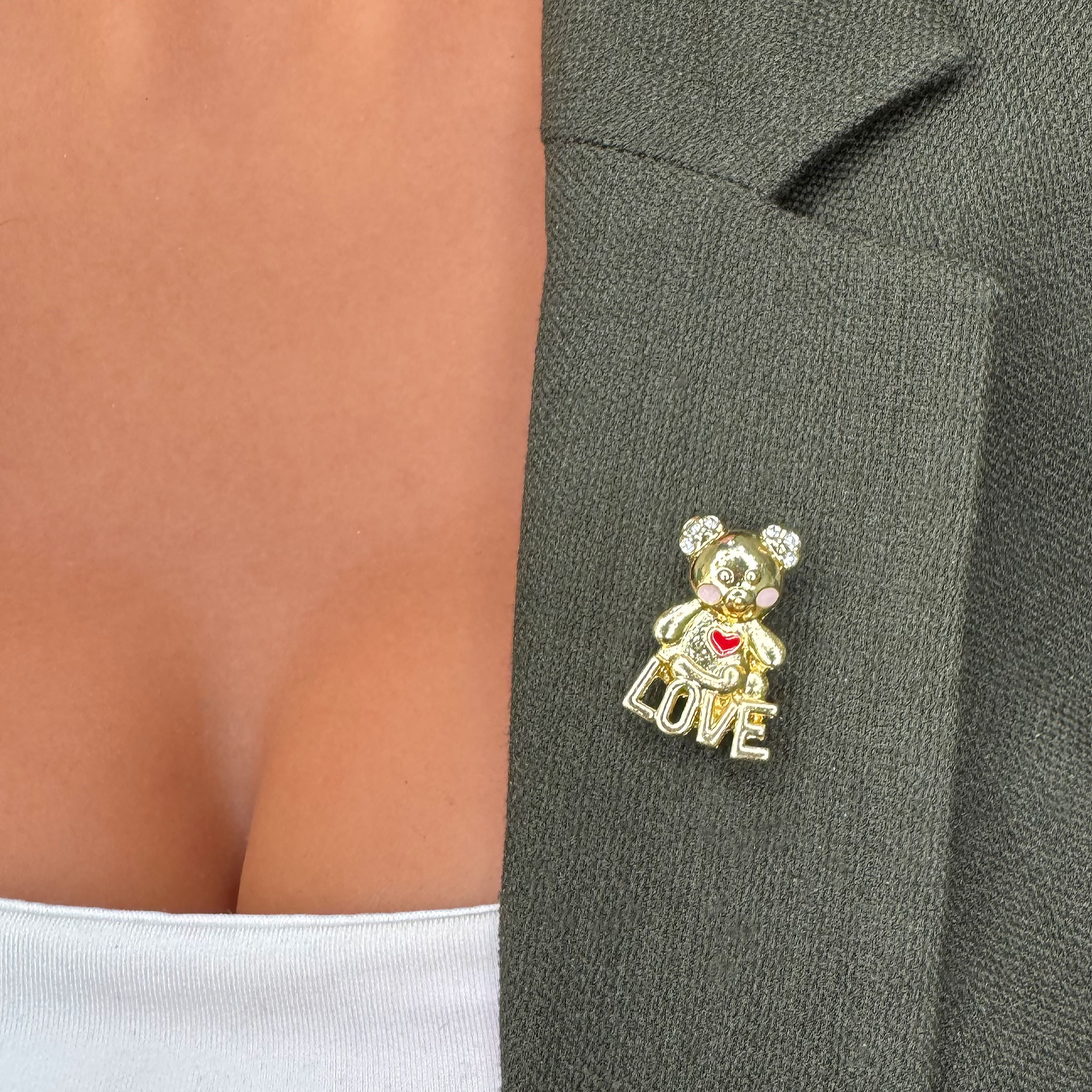 - Ursulețul este adesea asociat cu gingășia și căldura, în timp ce cuvântul love este un simbol direct al iubirii. Broșa devine astfel o mică poveste despre tandrețe și afecțiune.