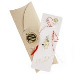 - Broșă Mărțișor Unique Gold Plated Fundiță Stilizată, șnur Marțișor alb-roșu, însoțită de suport pentru broșă, plic bej, pregătită cu grijă pentru a fi oferită ca un cadou special, simbol al tradiției.