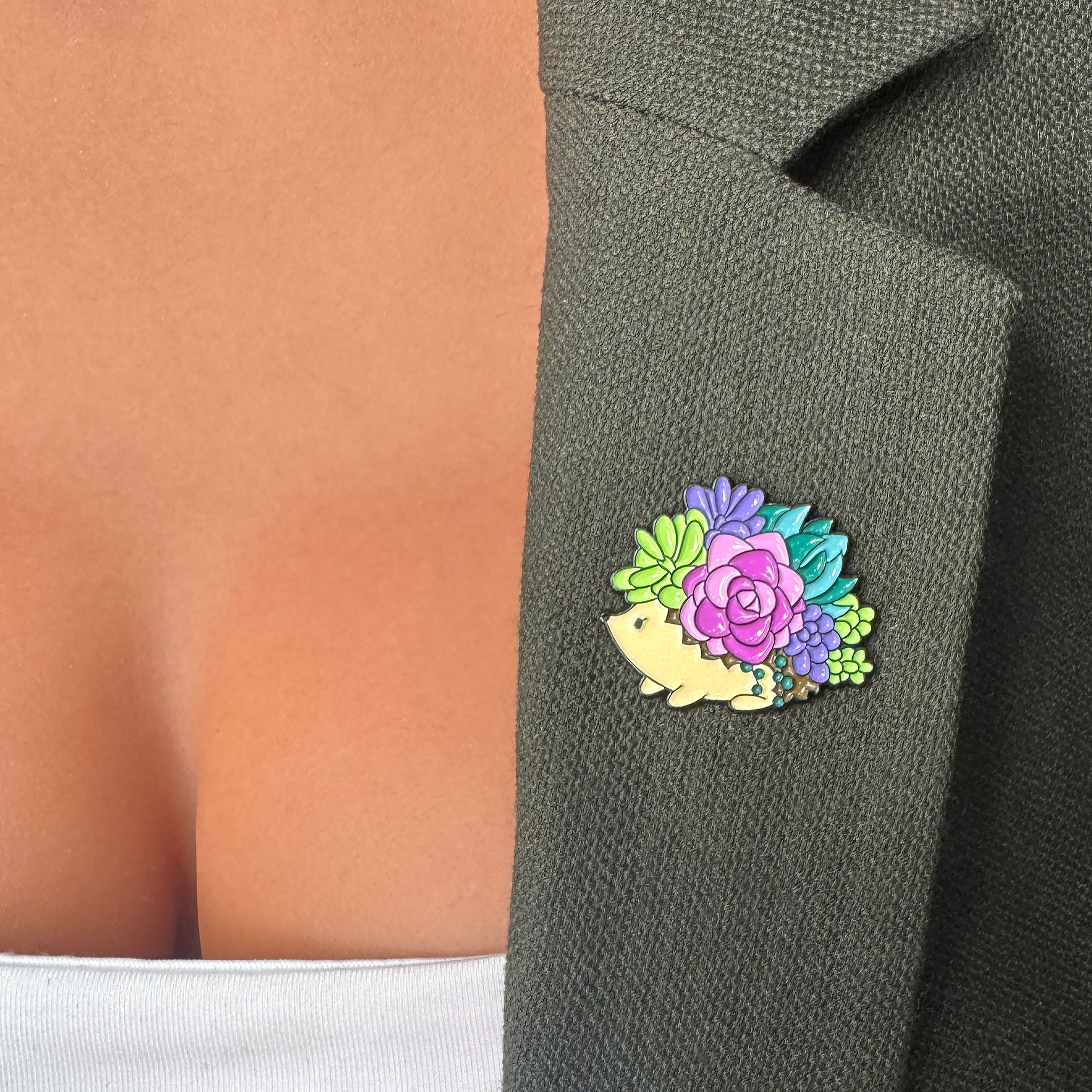 Această broșă tip pin combină originalitatea cu un design jucăuș. Ariciul prezintă țepi transformați în flori colorate, creând un accesoriu vesel și plin de personalitate.