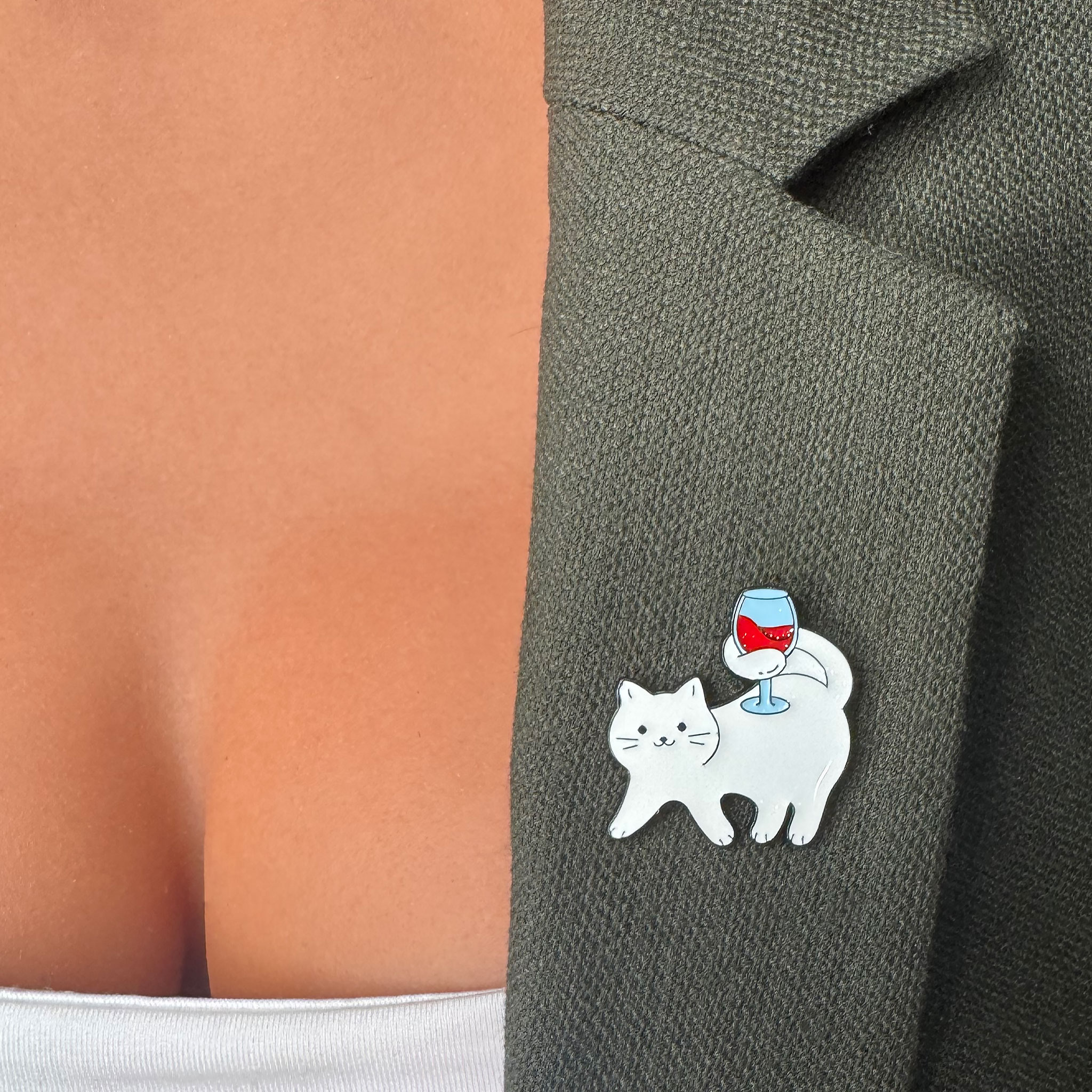 Broșa Mărțișor „Cat” simbolizează momentele de relaxare și răsfăț. Pisicuța care ține în codiță un pahar de vin aduce un strop de umor și voie bună ținutei. Designul jucăuș și detaliile simpatice fac această broșă un accesoriu expresiv și plin de personalitate.