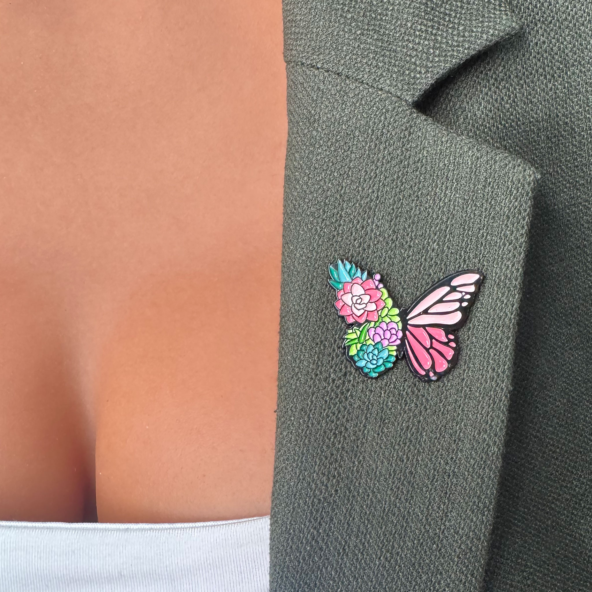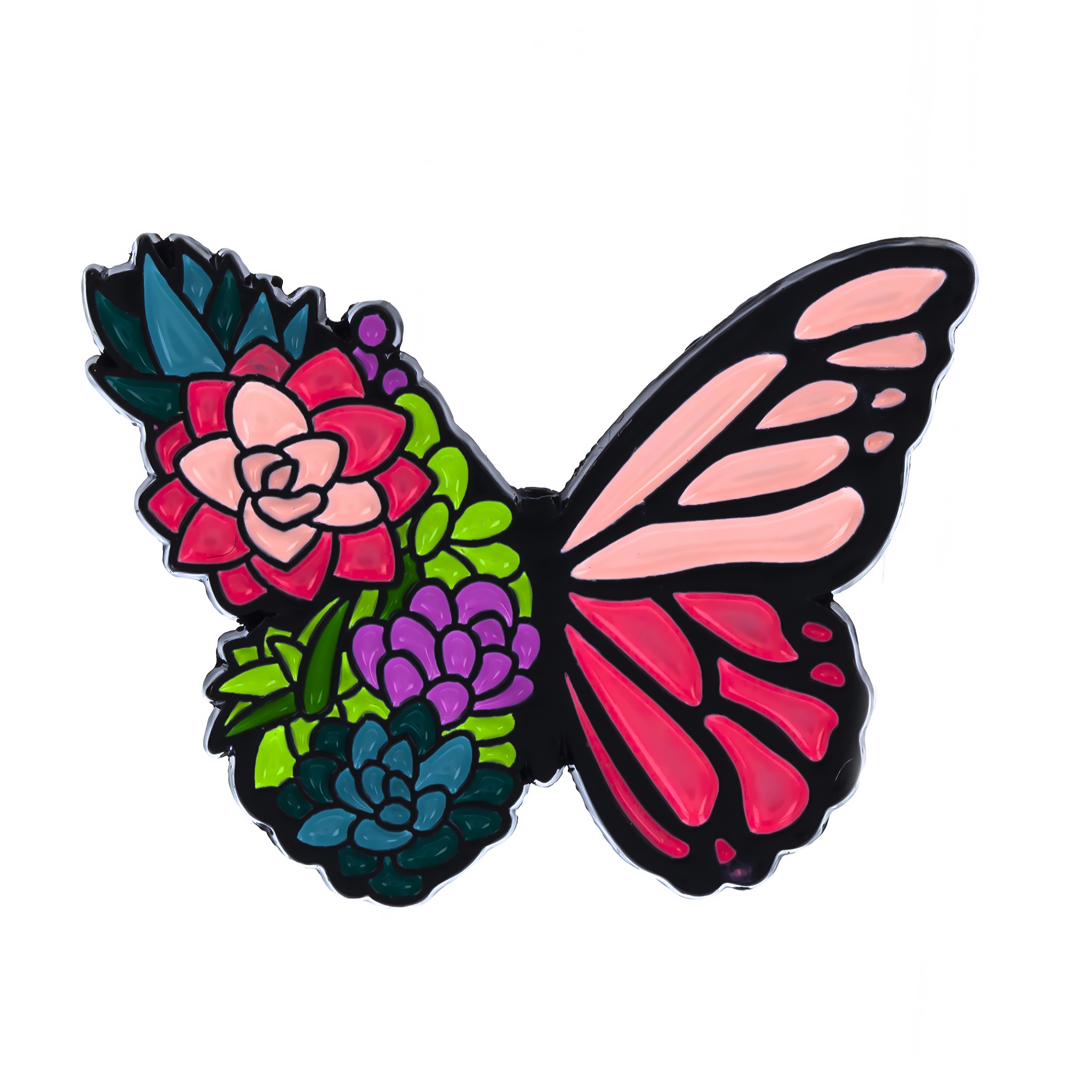Această broșă tip pin se evidențiază prin combinația de culori și detalii florale. Modelul cu fluture este versatil și plin de viață, potrivit pentru a completa discret orice stil vestimentar.