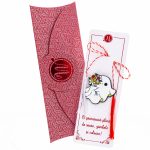 - Broșă Pin Happy – Model Friendly Ghost, șnur Marțișor alb-roșu, însoțită de suport pentru broșă și plic, pregătită să adauge un zâmbet fiecărei zile.
