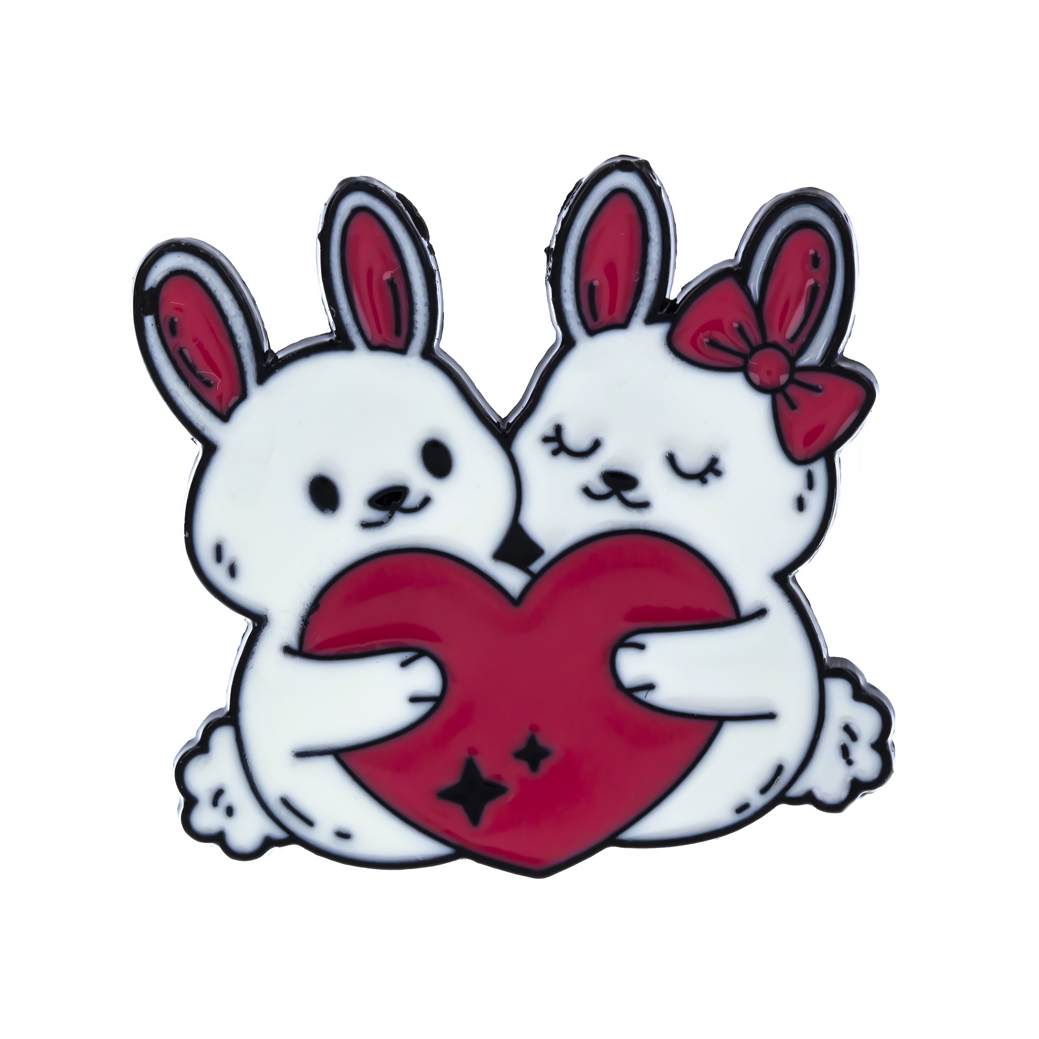Această broșă tip pin surprinde într-un mod delicat tema prieteniei și a afecțiunii. Cei doi iepurași albi țin o inimioară roșie, simbol al conexiunii și al sentimentelor sincere.