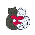 - Design: Realizată cu atenție la detalii, broșa prezintă două pisicuțe unite printr-o inimioară roșie. Contrastul dintre culori oferă un efect vizual plăcut și echilibrat.