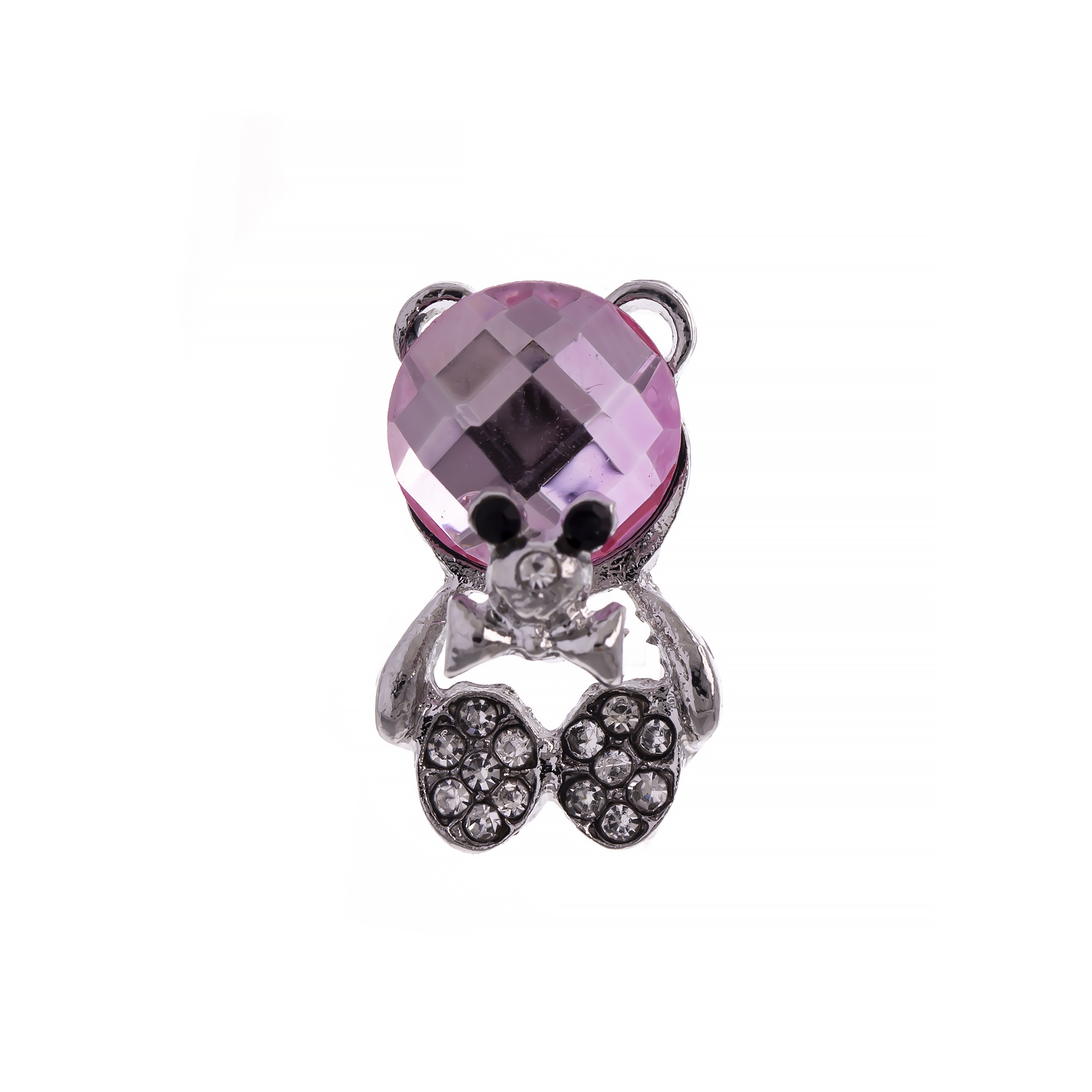Broșă Pin Luna Ursuleț Argintiu cu Piatră Roz