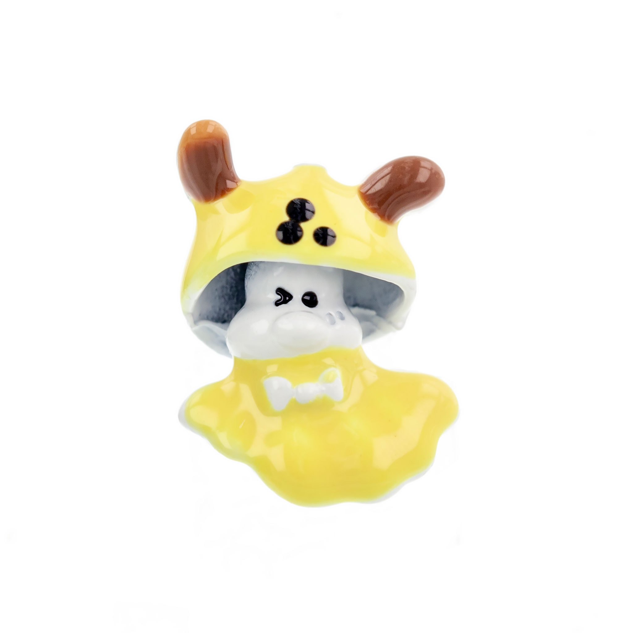 - Design Jucăuș: Broșa înfățișează un animăluț drăgălaș îmbrăcat într-o hăinuță galbenă, realizată în nuanțe calde și luminoase. Expresia sa și forma rotunjită îi oferă un aspect prietenos, perfect pentru a aduce zâmbete copiilor.