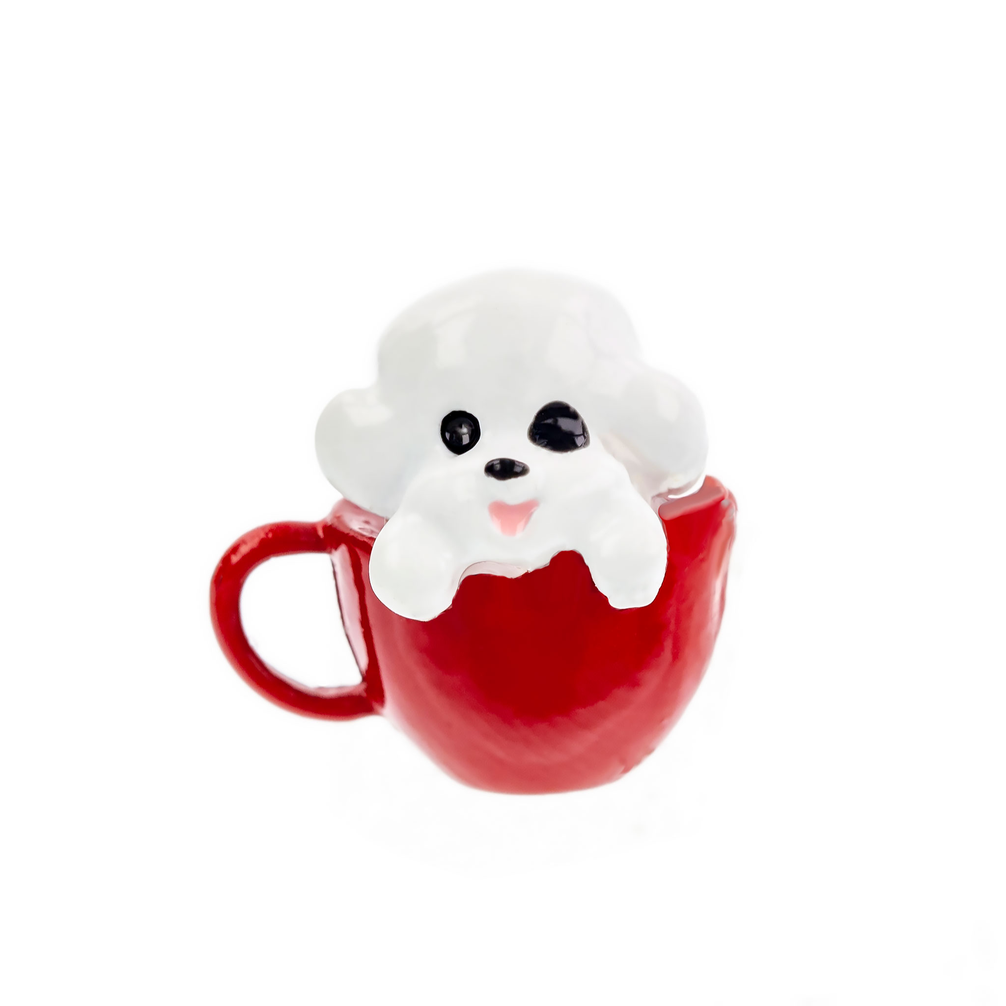 Broșă Pin Mărțișor Copii – Cățeluș în Cană Roșie