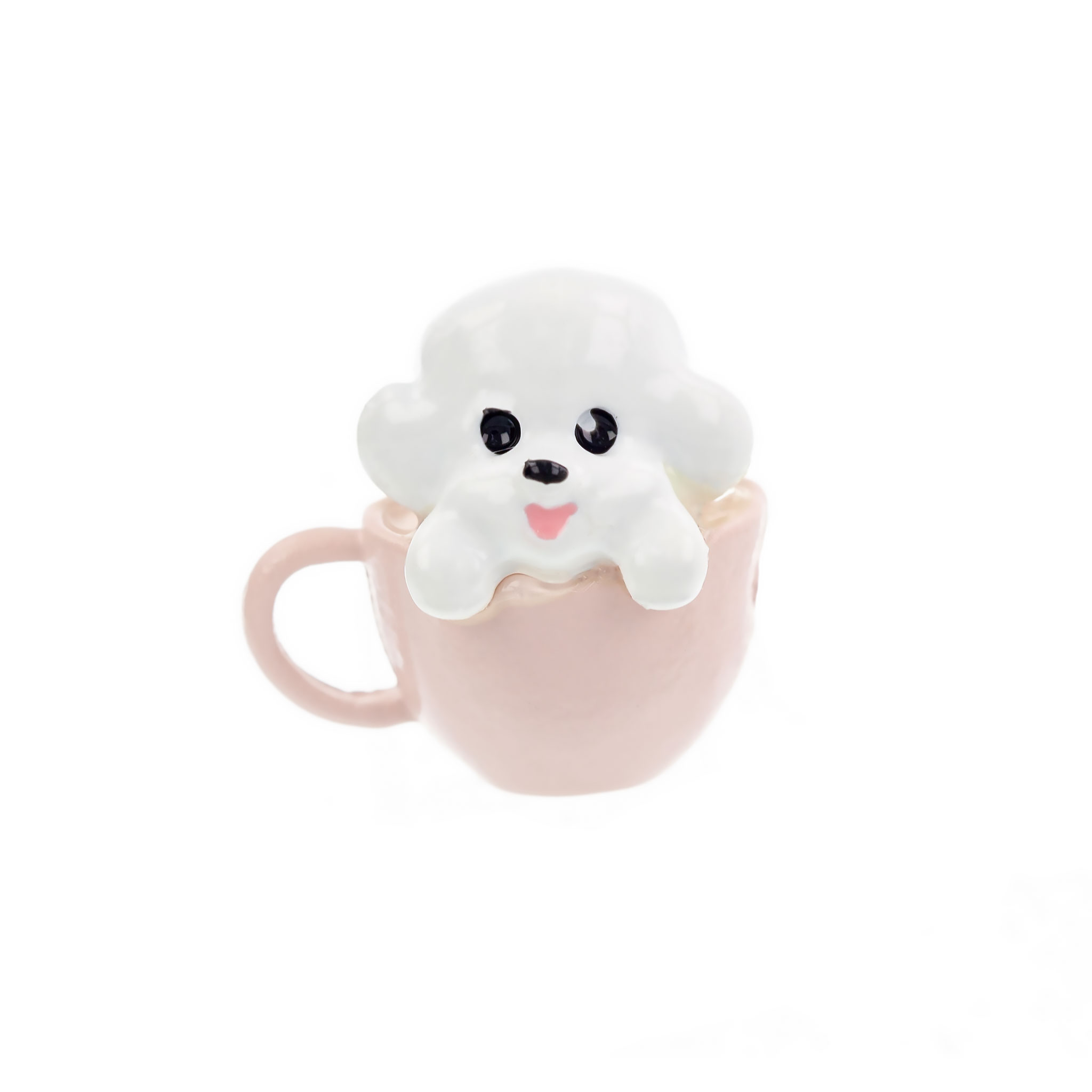 - Cățelușul în cană roz simbolizează gingășia, afecțiunea și bucuria de a împărtăși momente frumoase. Este o broșă care aduce zâmbete și transmite căldură.