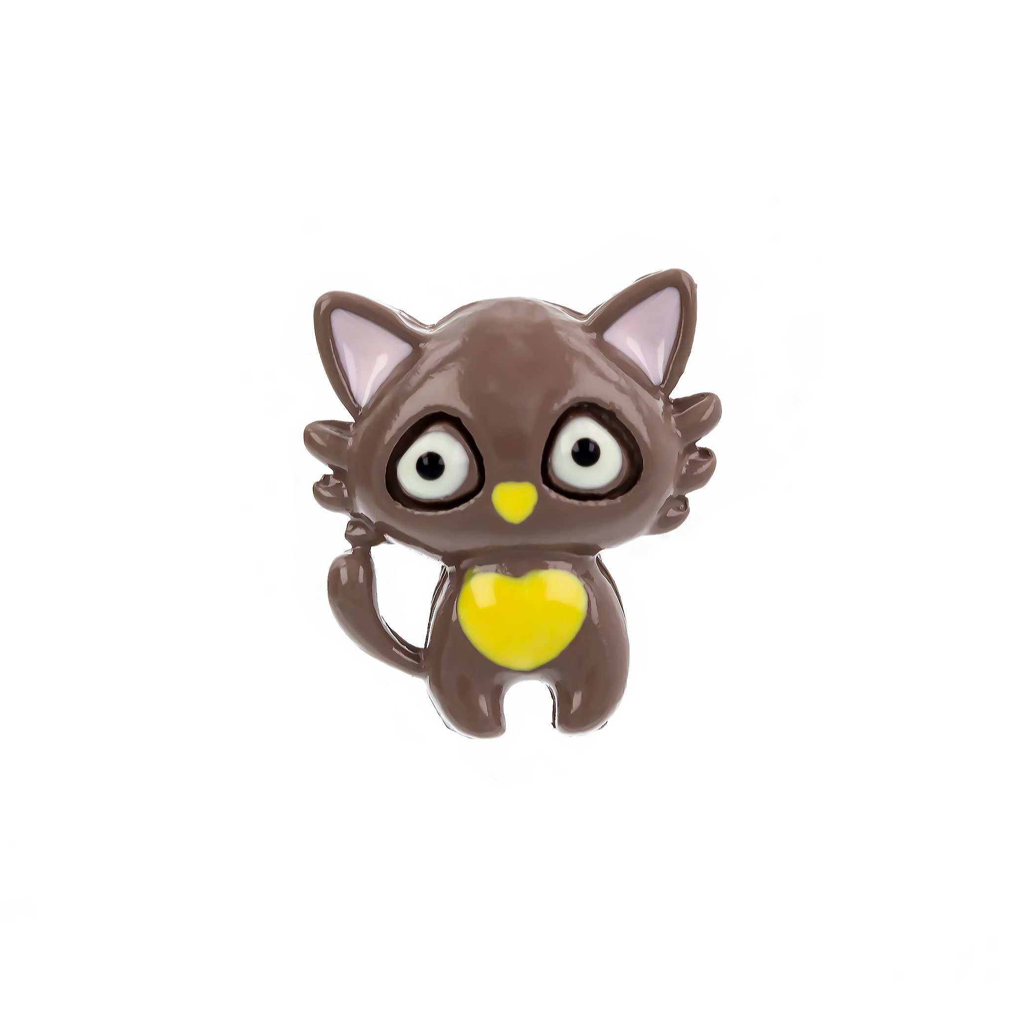 - Design Jucăuș: Broșa înfățișează o pisicuță maro cu expresie prietenoasă. Contrastul plăcut dintre nuanța caldă de maro și galbenul inimioarei o face atractivă și ușor de îndrăgit de copii. Finisajul neted și marginile rotunjite oferă un accesoriu sigur și plăcut la atingere.