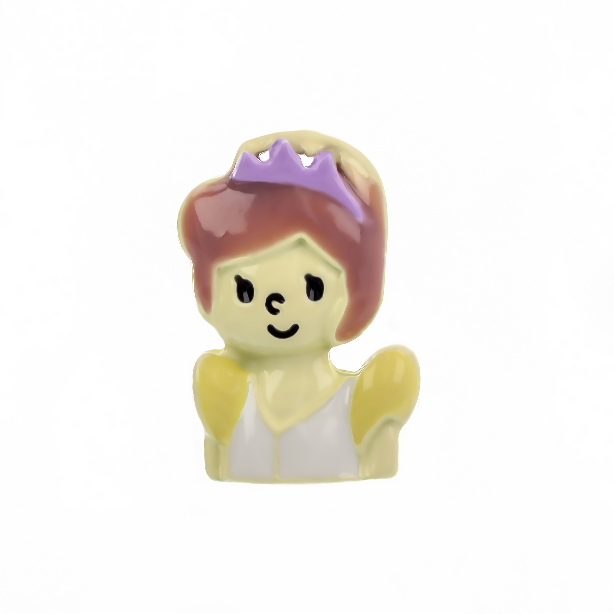 - Prințesa cu coroniță mov simbolizează imaginația și curajul. Este un mic companion care inspiră copii să viseze frumos și să exploreze lumea cu veselie și încredere.