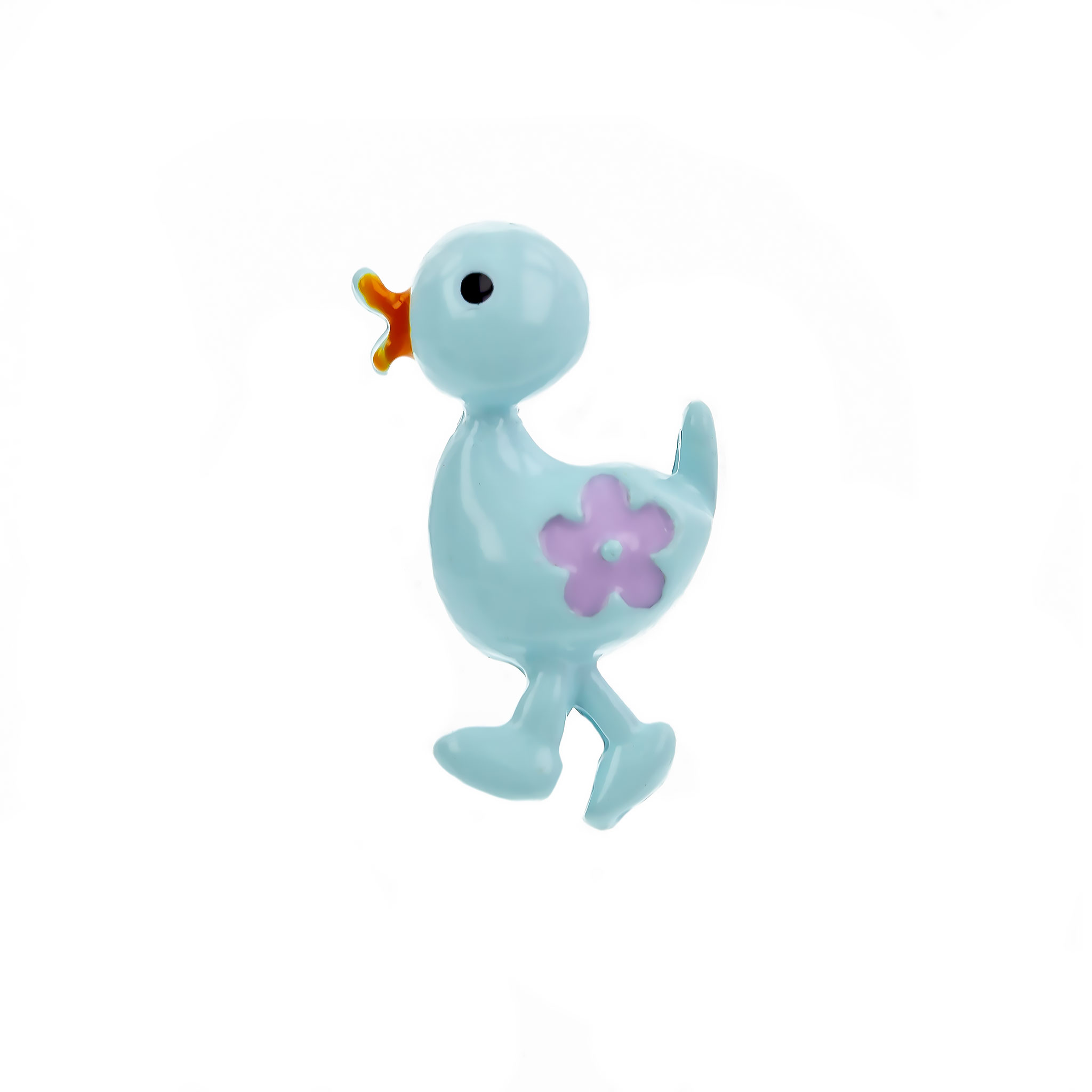Această broșă transmite calm și veselie în același timp. Rățușca albastră cu floricică aduce prietenie și optimism în zilele celor mici.