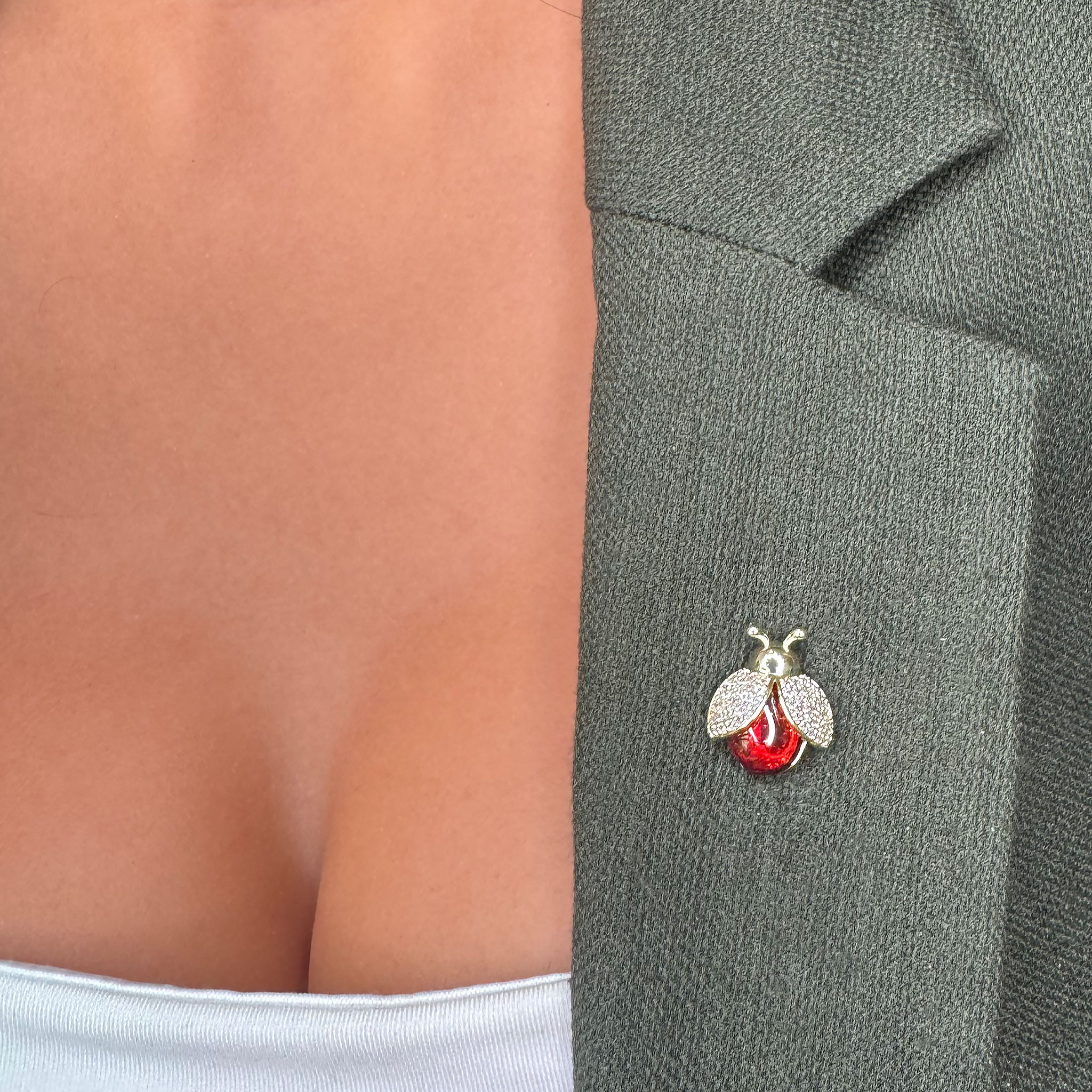 Broșa în formă de buburuză cu piatră roșie este un accesoriu plin de farmec și veselie, inspirat de natura. Buburuza, cunoscută pentru aducerea norocului, este un simbol al protecției și al pozitivismului, iar piatra roșie adaugă un strop de culoare vibrantă, atrăgând atenția și completând perfect designul jucăuș al acestui accesoriu.