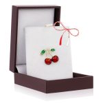 - Broșă Pin Premium Gold Plated Cireșe, șnur Marțișor alb-roșu, ambalată pe suport pentru broșă și casetă, însoțită de pungă cadou și plic verde pentru mesaj, pregătită cu grijă astfel încât să devină un cadou memorabil.