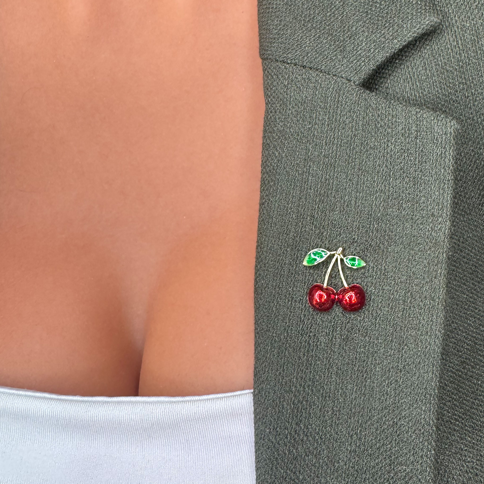 Broșa în formă de cireșe este o bijuterie jucăușă și vibrantă, care adaugă un strop de culoare și prospețime ținutelor tale. Designul său inspirat de fructele de cireș, cu detalii fine, reflectă eleganța naturală.