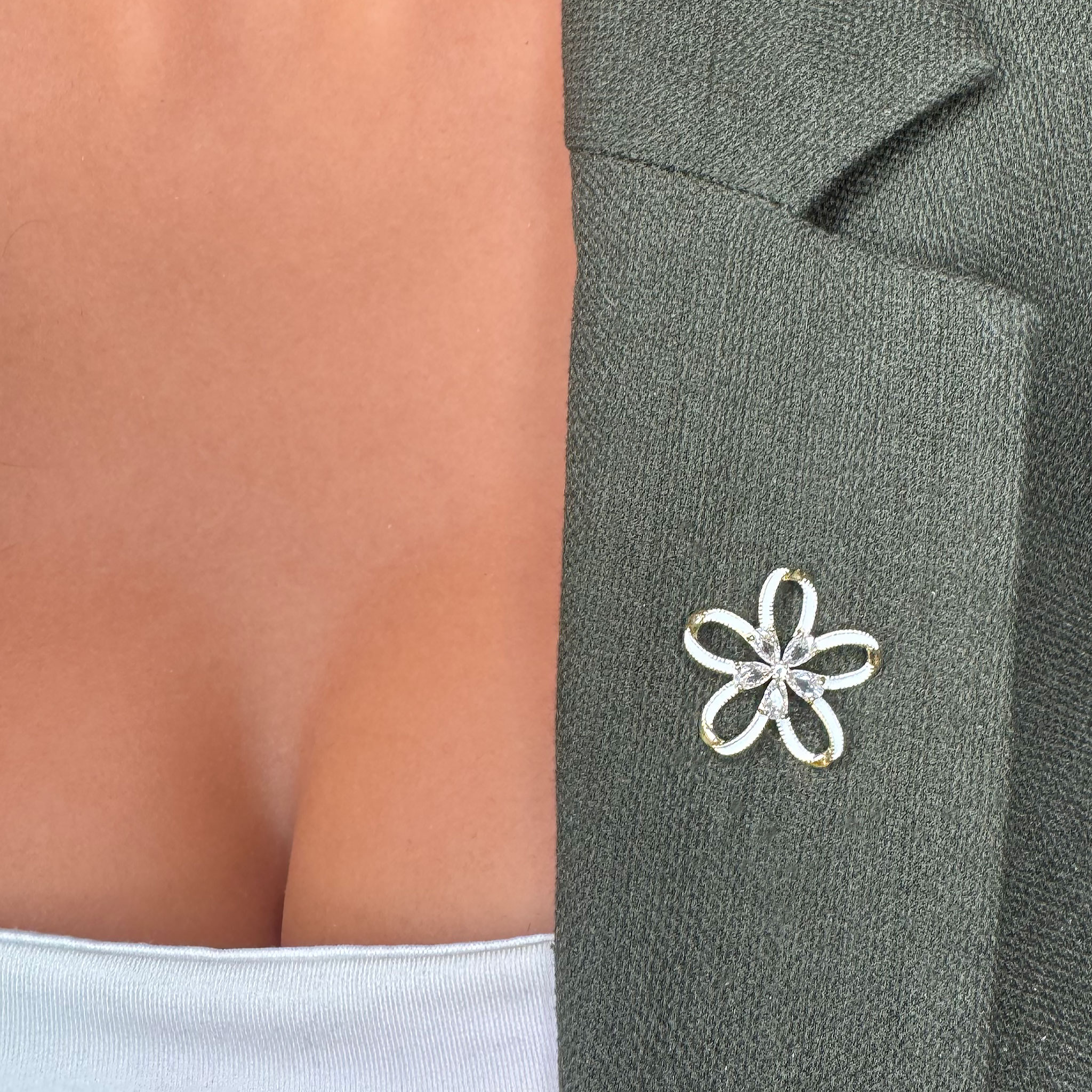 Broșă Pin Premium Gold Plated – Floare Albă Hand-Made