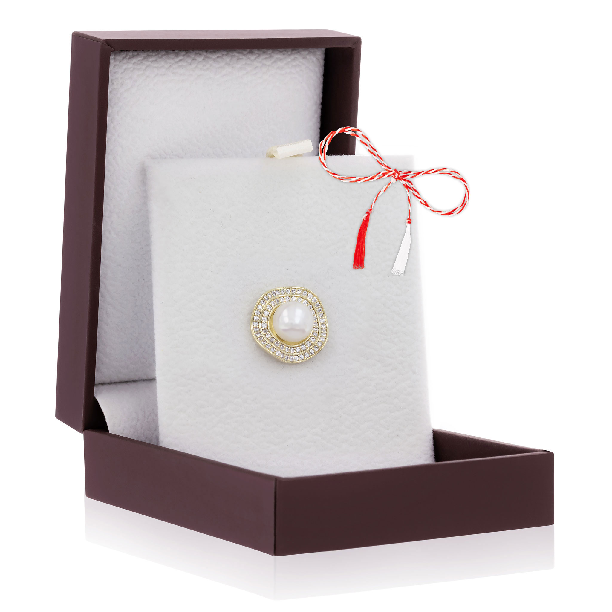 - Broșă Pin Premium Gold Plated Floare cu Perlă, șnur Marțișor alb-roșu, ambalată pe suport pentru broșă și casetă, însoțită de pungă cadou și plic verde pentru mesaj, pregătită cu grijă astfel încât să devină un cadou memorabil.