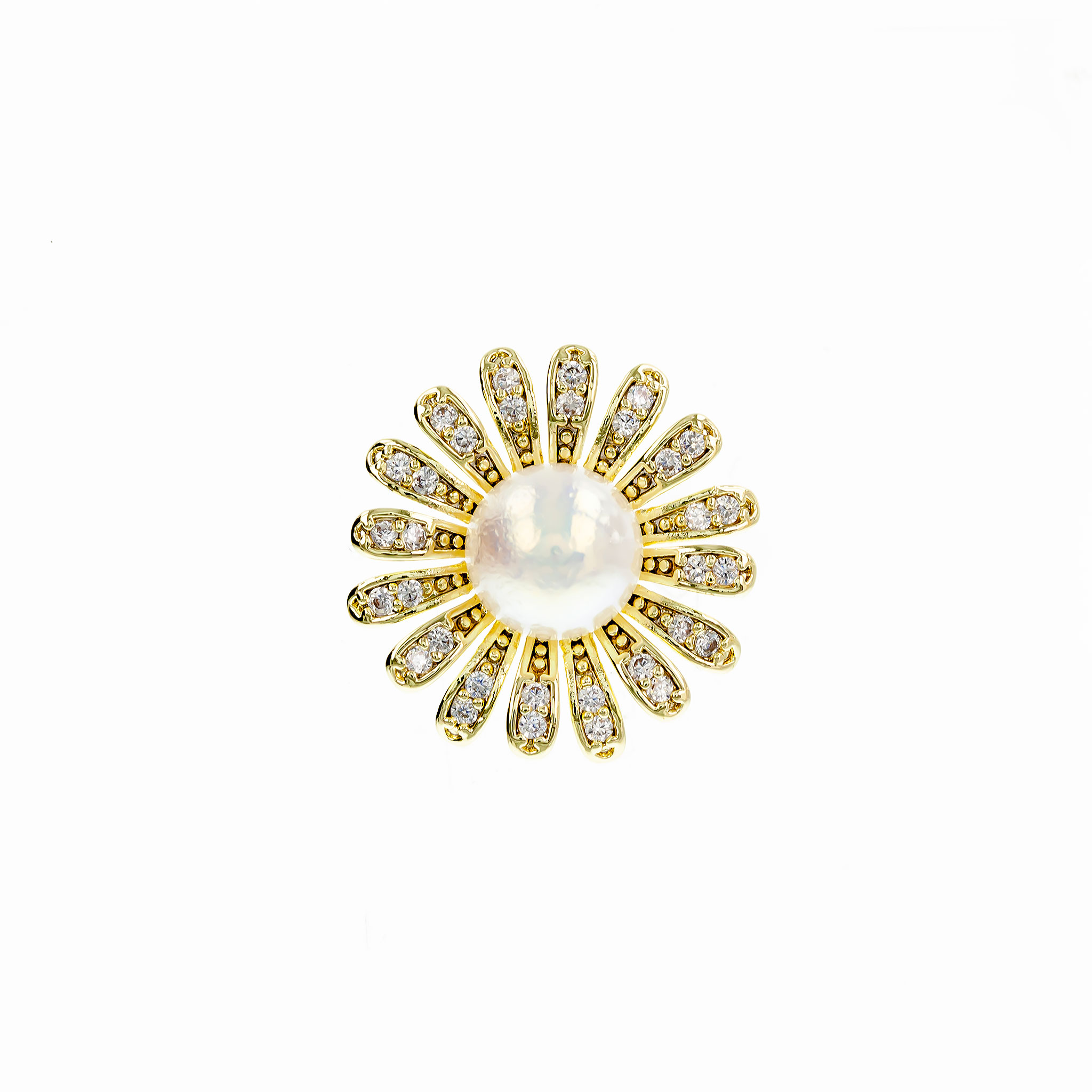 Broșă Pin Premium Gold Plated – Floare Delicată cu Perluță