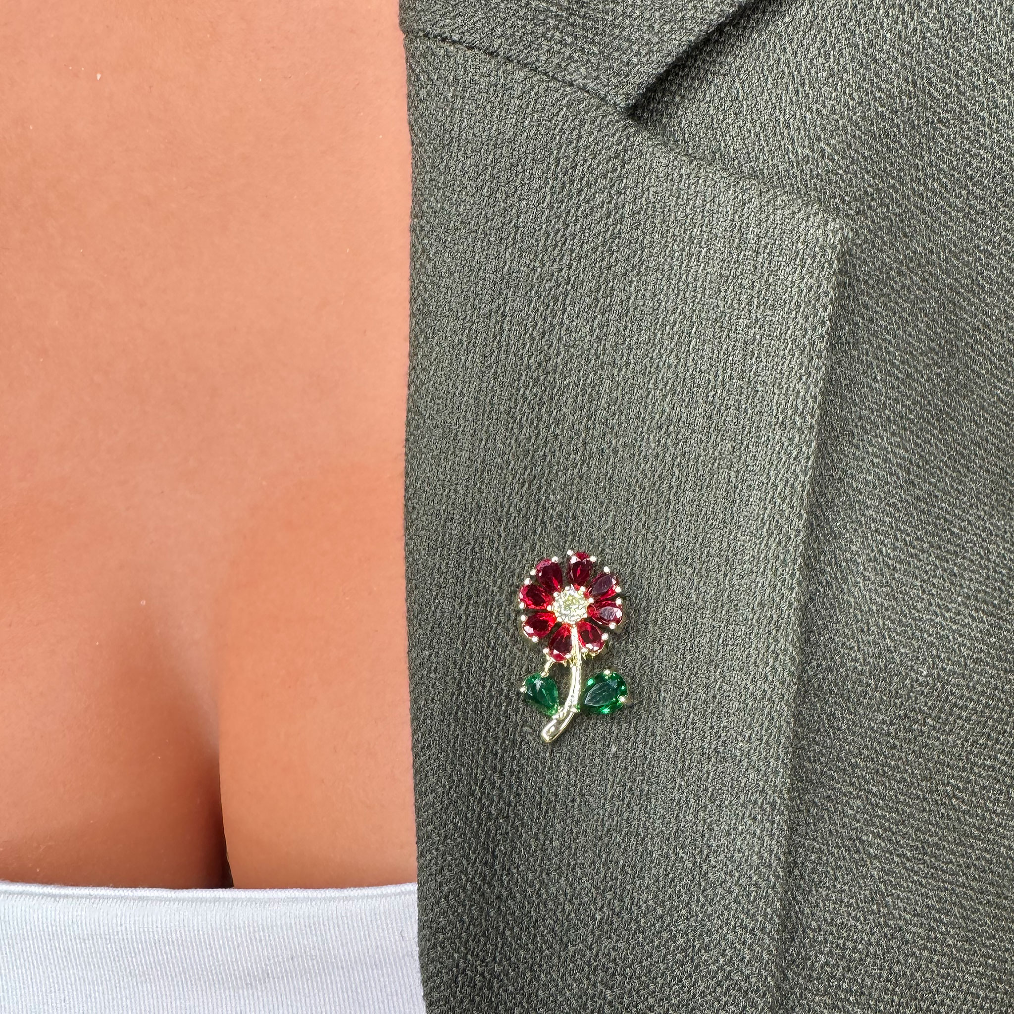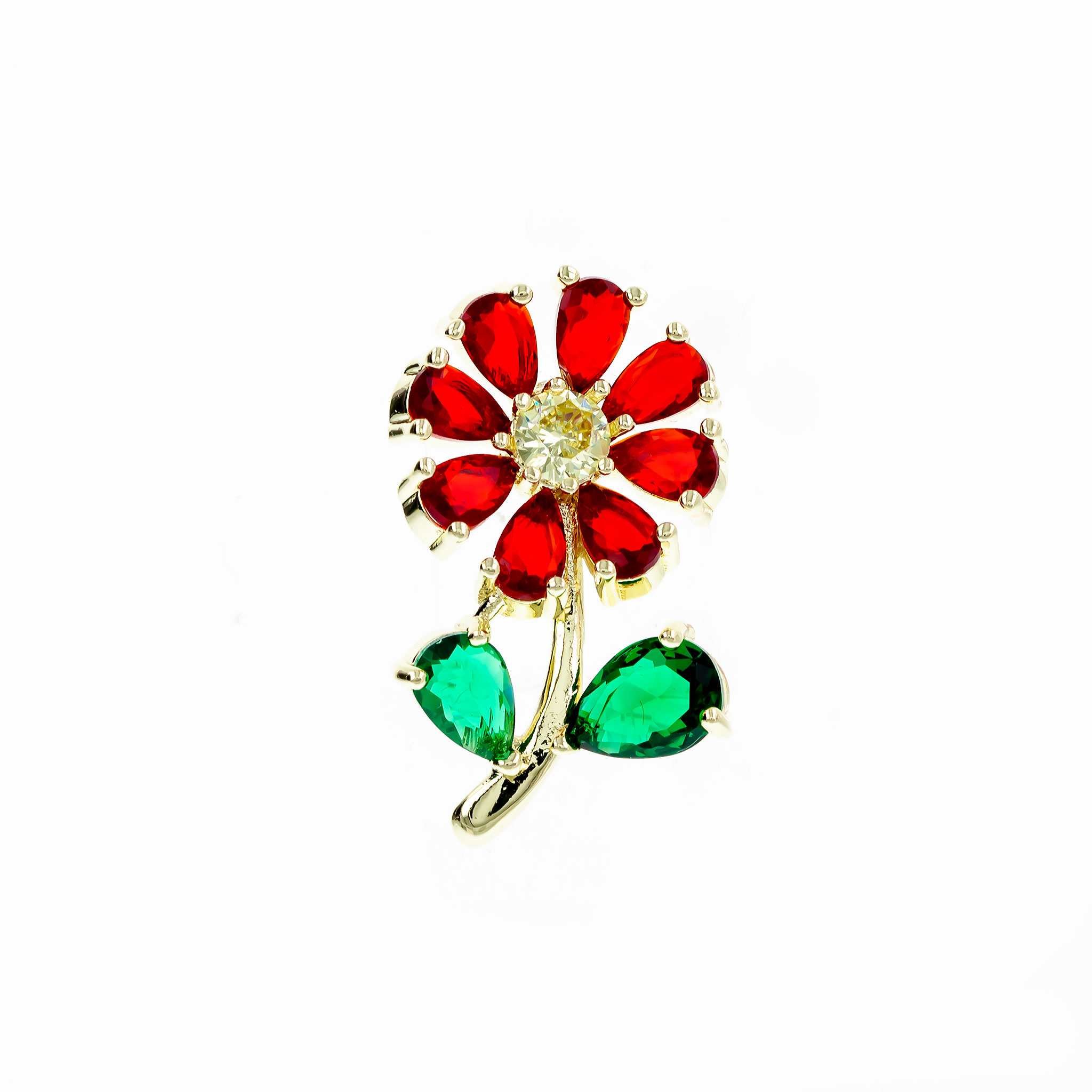 Broșa în formă de floricică cu petale roșii este o bijuterie delicată și plină de viață, care simbolizează pasiunea, bucuria și frumusețea naturii înflorite. Nuanța vibrantă a petalelor și designul atent lucrat fac din această broșă un accesoriu remarcabil și plin de energie pozitivă.