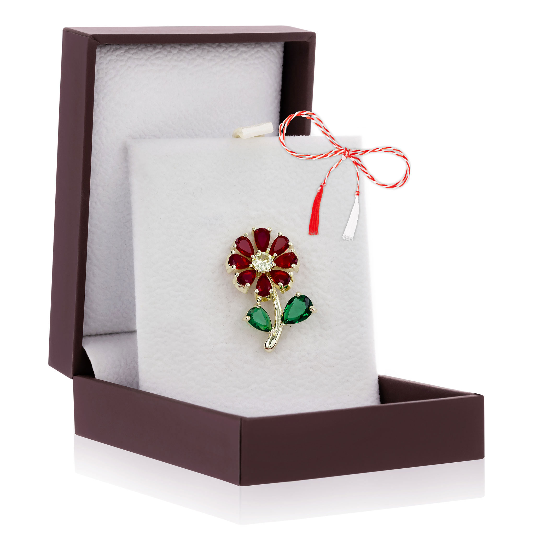 - Broșă Pin Premium Gold Plated Floricică cu Petale Roșii, șnur Marțișor alb-roșu, ambalată pe suport pentru broșă și casetă, însoțită de pungă cadou și plic roșu cu mesaj, pregătită cu grijă astfel încât să devină un cadou memorabil.