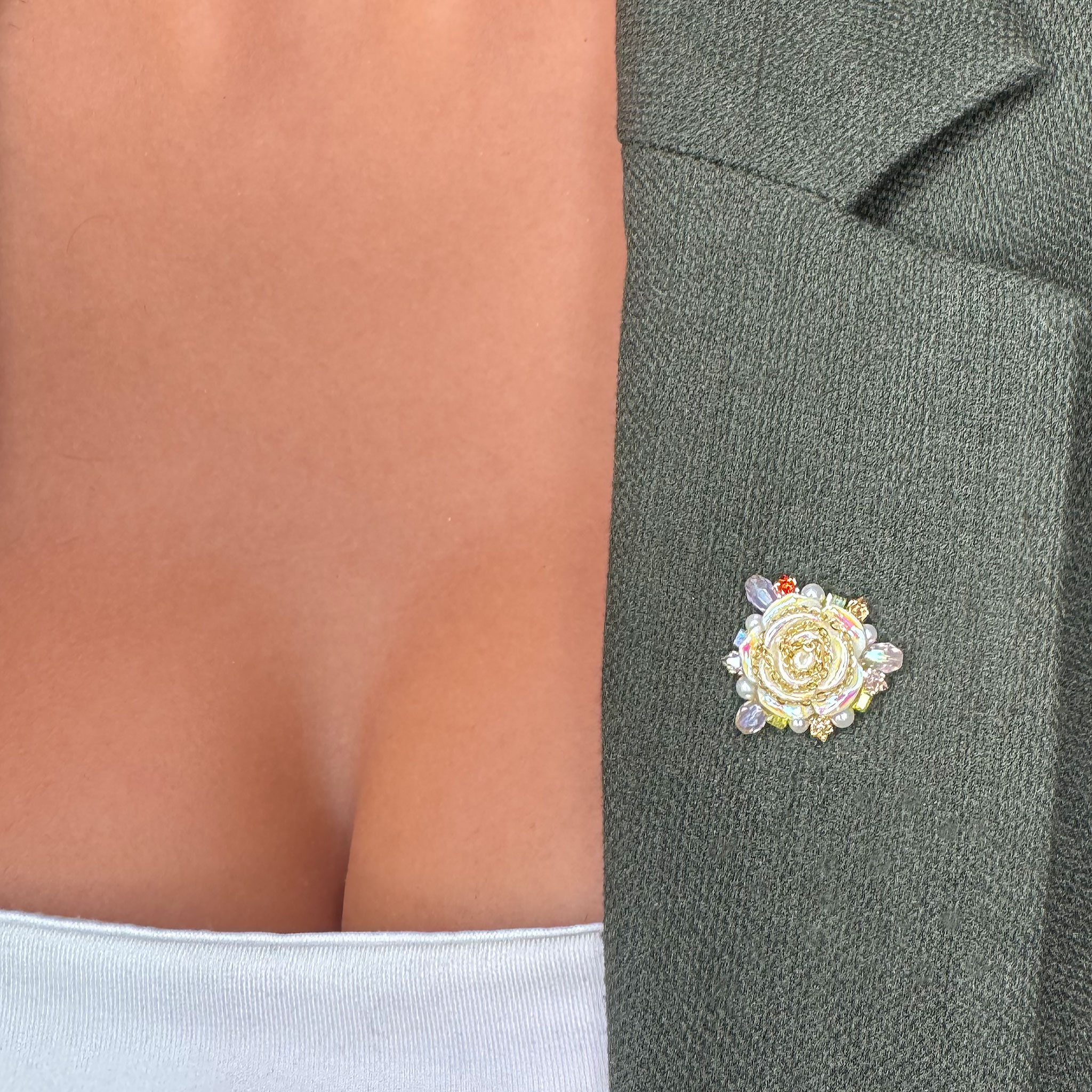 - Design Elegant: Forma broșei împreună cu detaliile fine ale petalelor completează perfect strălucirea pietricelelor, oferind un aspect elegant și plin de rafinament. Finisajul gold plated oferă broșei un aspect elegant și atrăgător