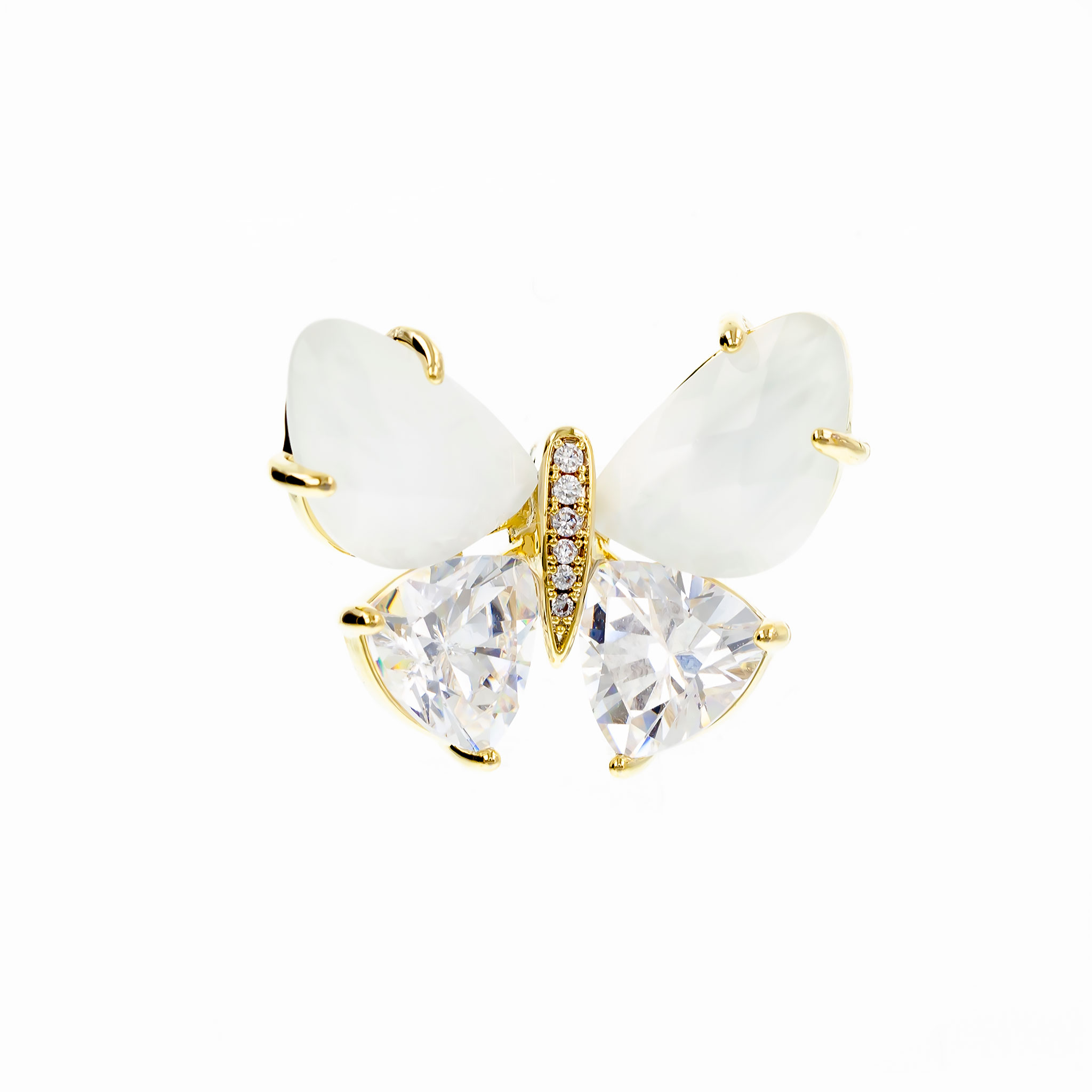 Broșă Pin Premium Gold Plated – Fluturaș cu Aripi Albe