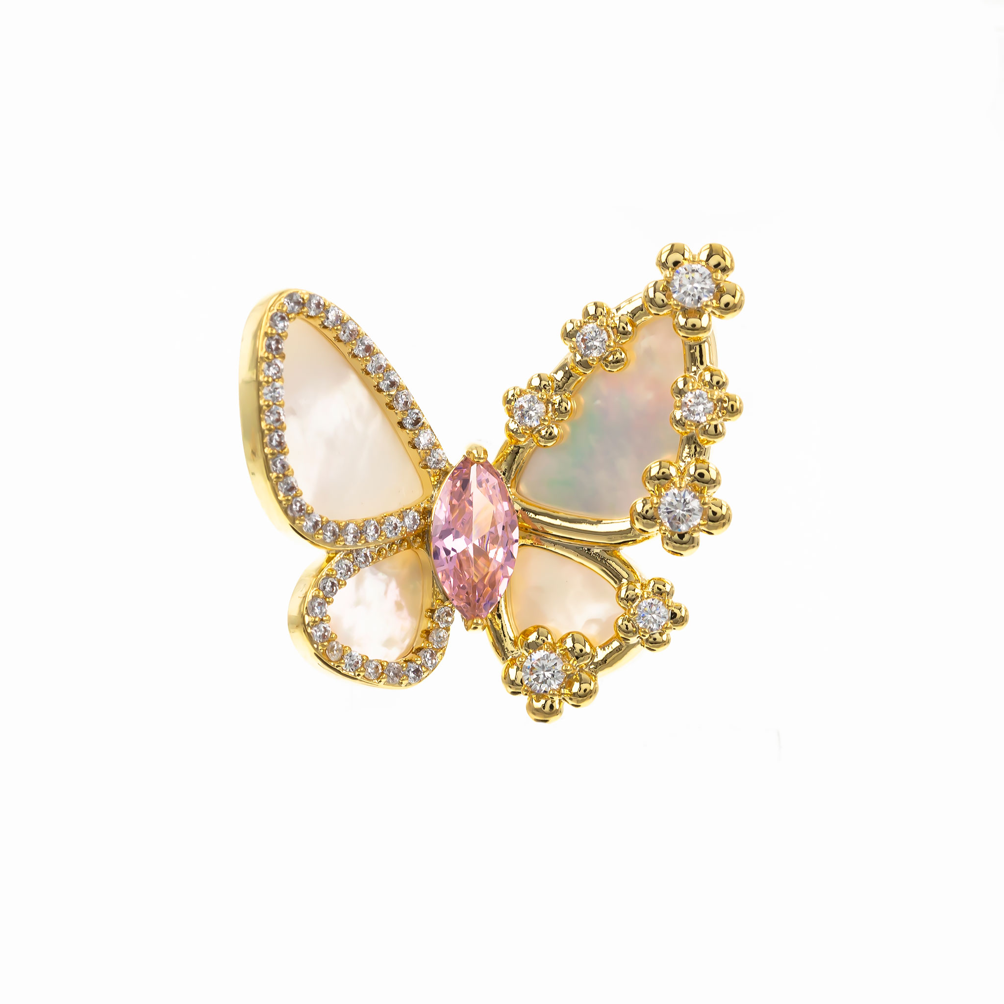 Broșă Pin Premium Gold Plated – Fluturaș cu Piatră Roz