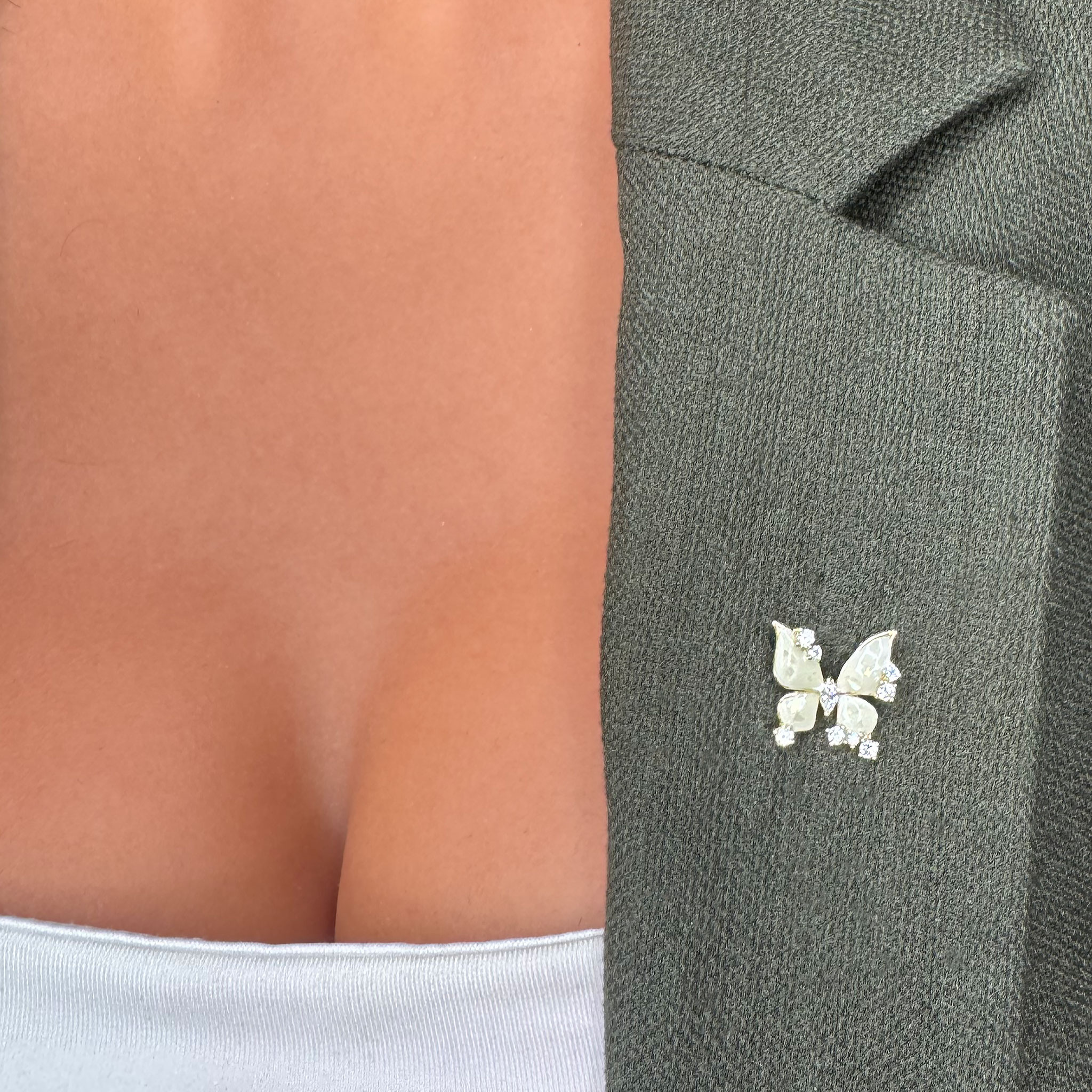 - Design Elegant: Forma de fluturaș, împreună cu cristalele sclipitoare, face ca această broșă să fie un accesoriu elegant și captivant.