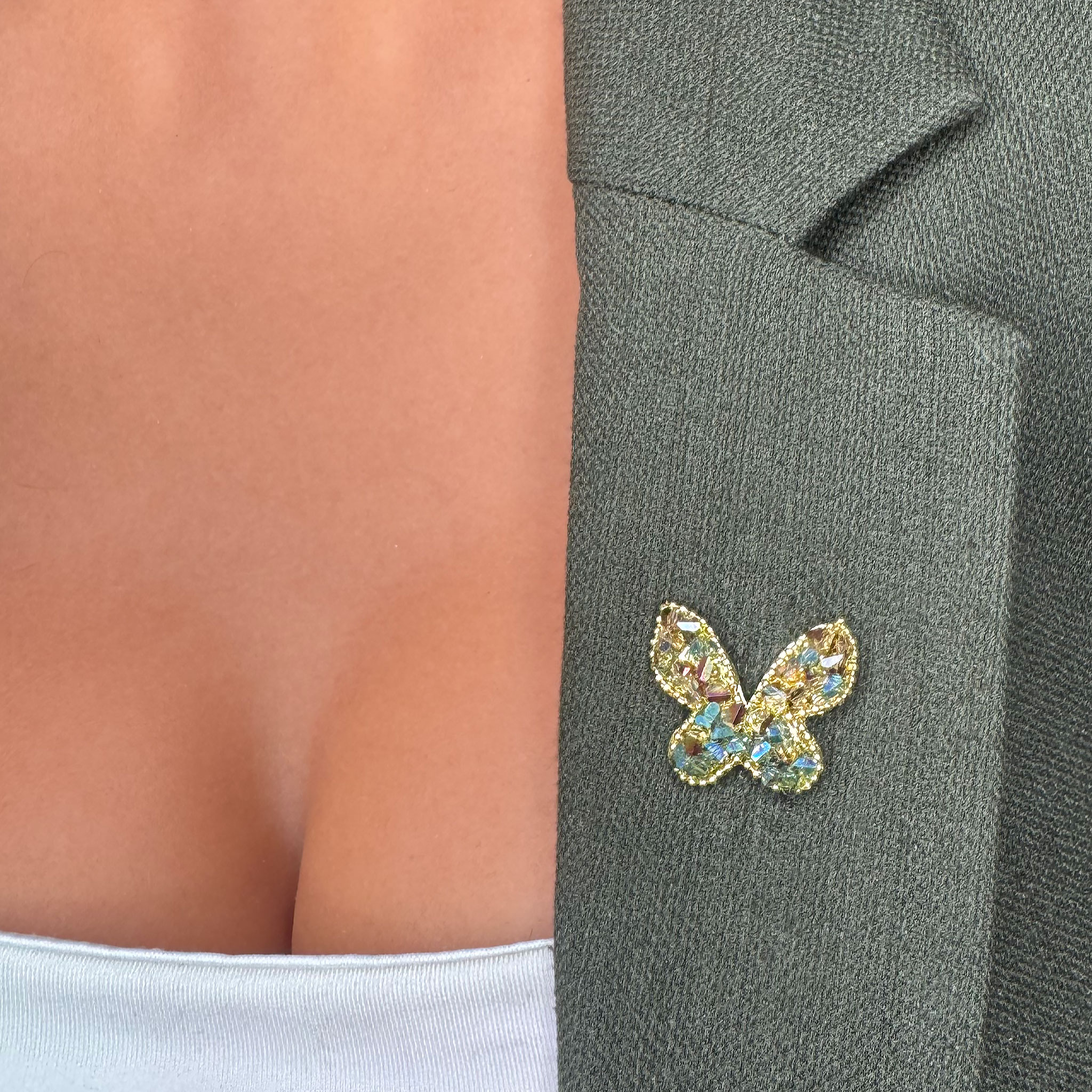 Broșă Pin Premium Gold Plated – Fluture Cu Pietricele Multicolore Hand-Made