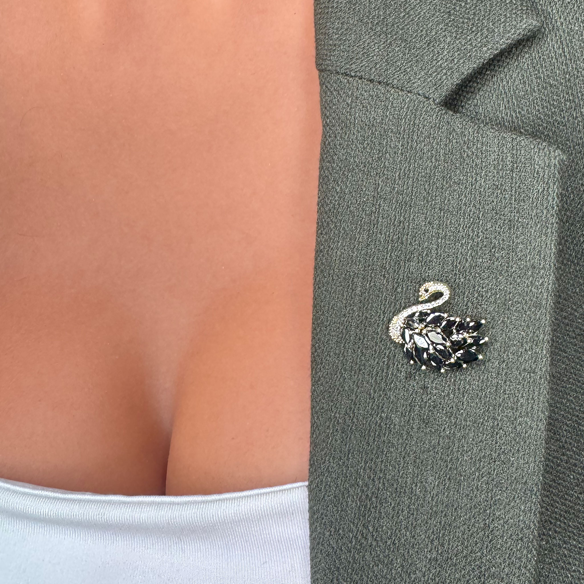 - Design Elegant: Broșa în formă de lebădă se remarcă prin formele sale fluide și detaliile fine, evocând eleganța și rafinamentul. Finisajul strălucitor și cristalele delicate adaugă un plus de farmec.