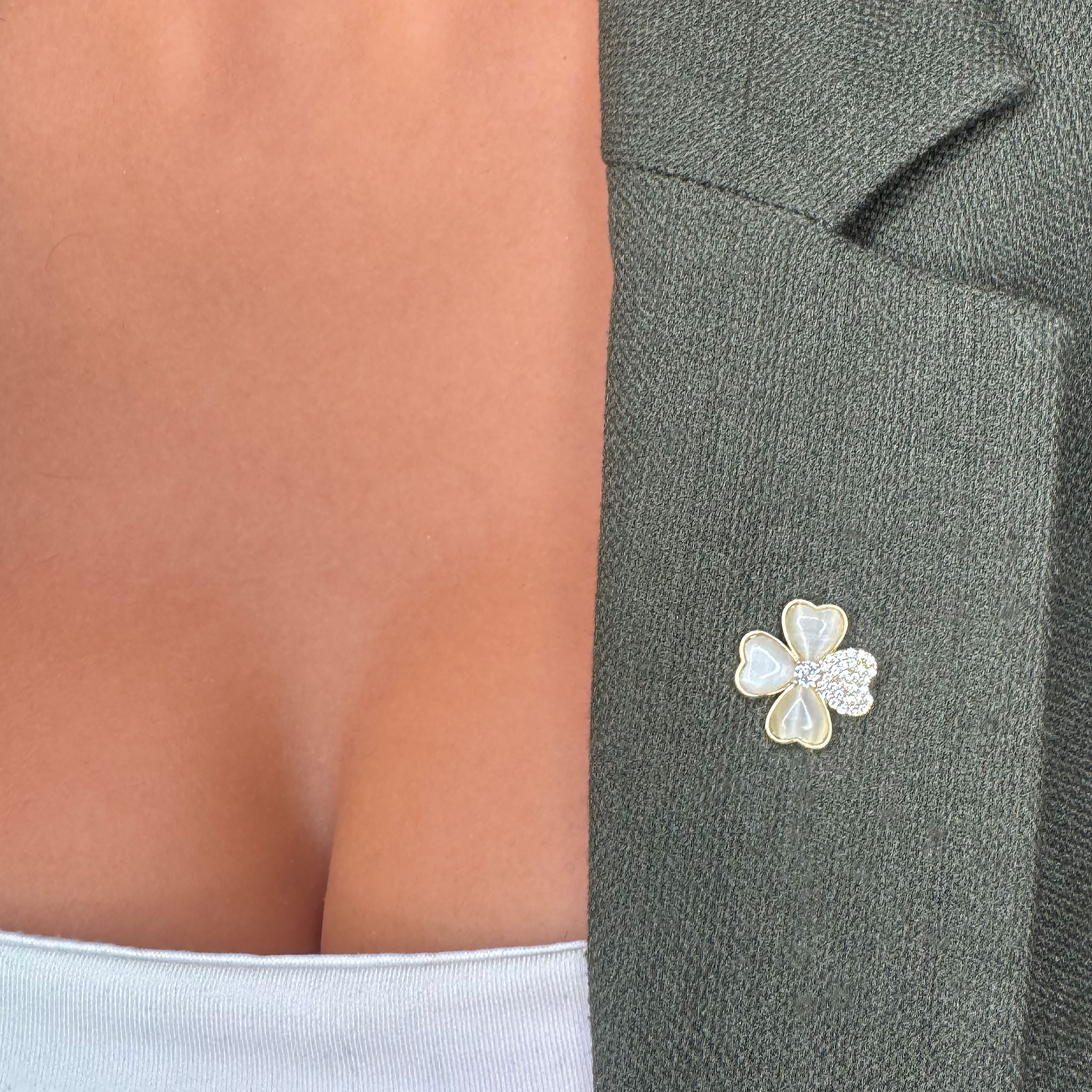 Broșă Pin Premium Gold Plated – Trifoi Cu Petală Sidefată