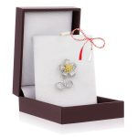 - Broșă Pin Premium White Plated Palladium Floare Stilizată Argintie, șnur Marțișor alb-roșu, ambalată pe suport pentru broșă și casetă, însoțită de pungă cadou și plic verde pentru mesaj, pregătită cu grijă astfel încât să devină un cadou memorabil.