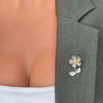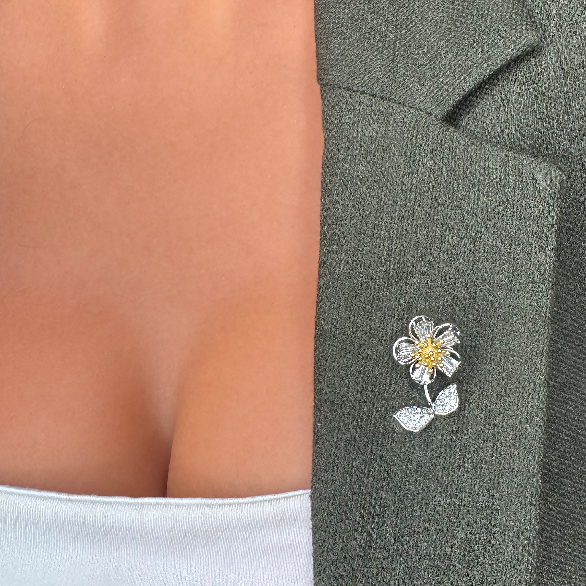 Broșă Pin Premium White Plated Palladium – Floare Stilizată Argintie