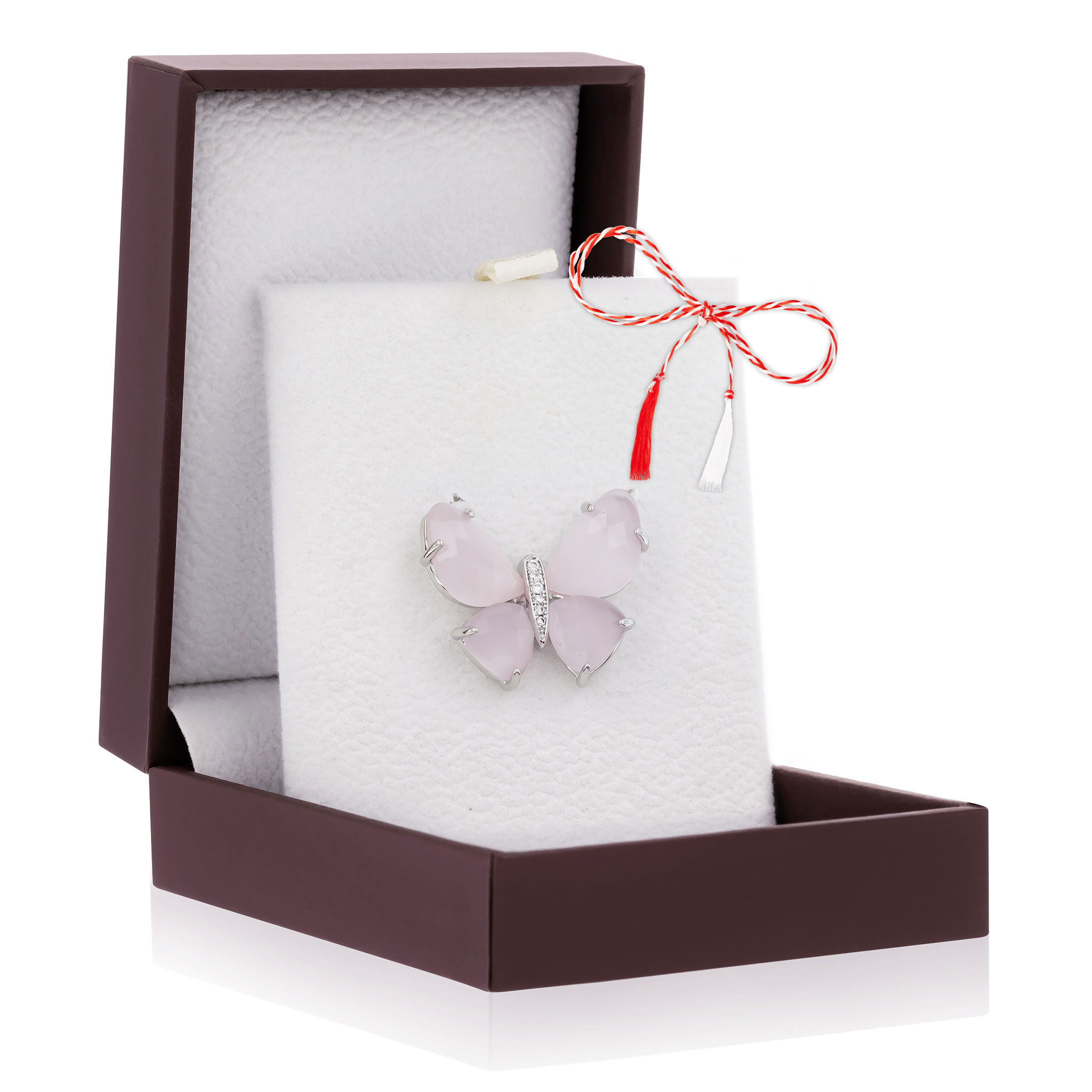 - Broșă Pin Premium White Plated Palladium Fluture Roz, șnur Marțișor alb-roșu, ambalată pe suport pentru broșă și casetă, însoțită de pungă cadou și plic verde pentru mesaj, pregătită cu grijă astfel încât să devină un cadou memorabil.